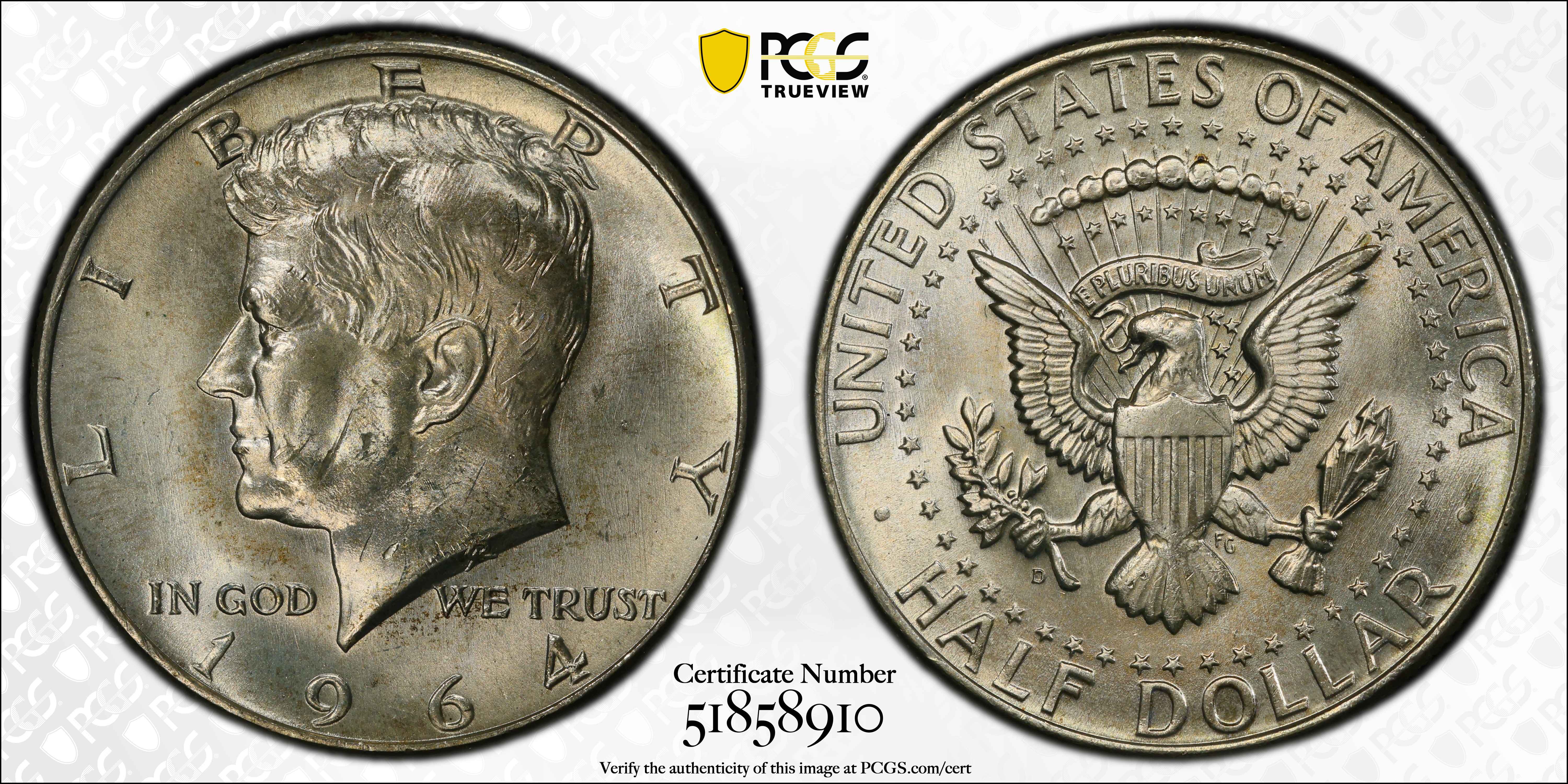 1964-D 50C MS63 Certification #51858910, PCGS #6707