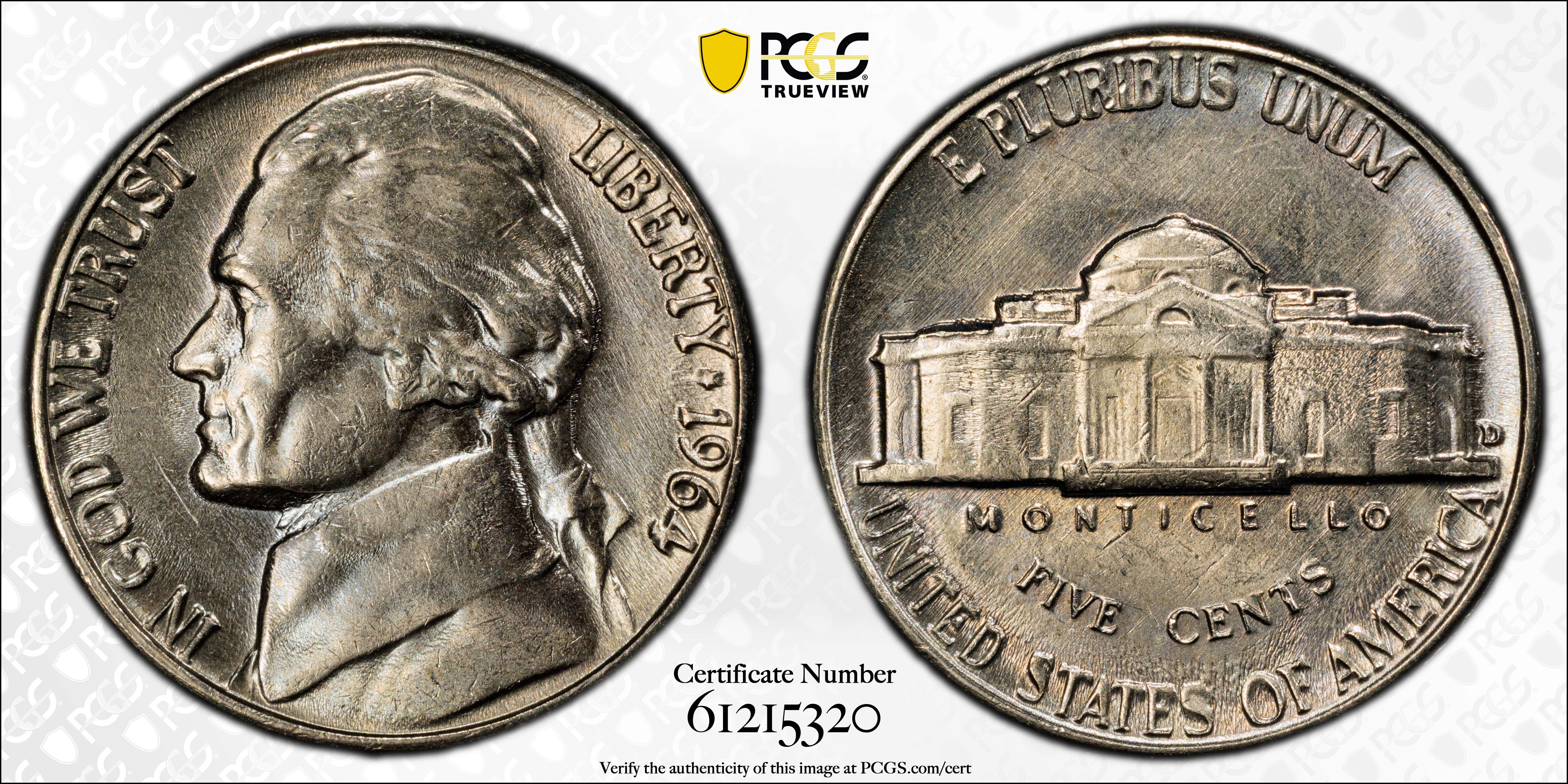 1964-D 5C MS65 Certification #61215320, PCGS #4076
