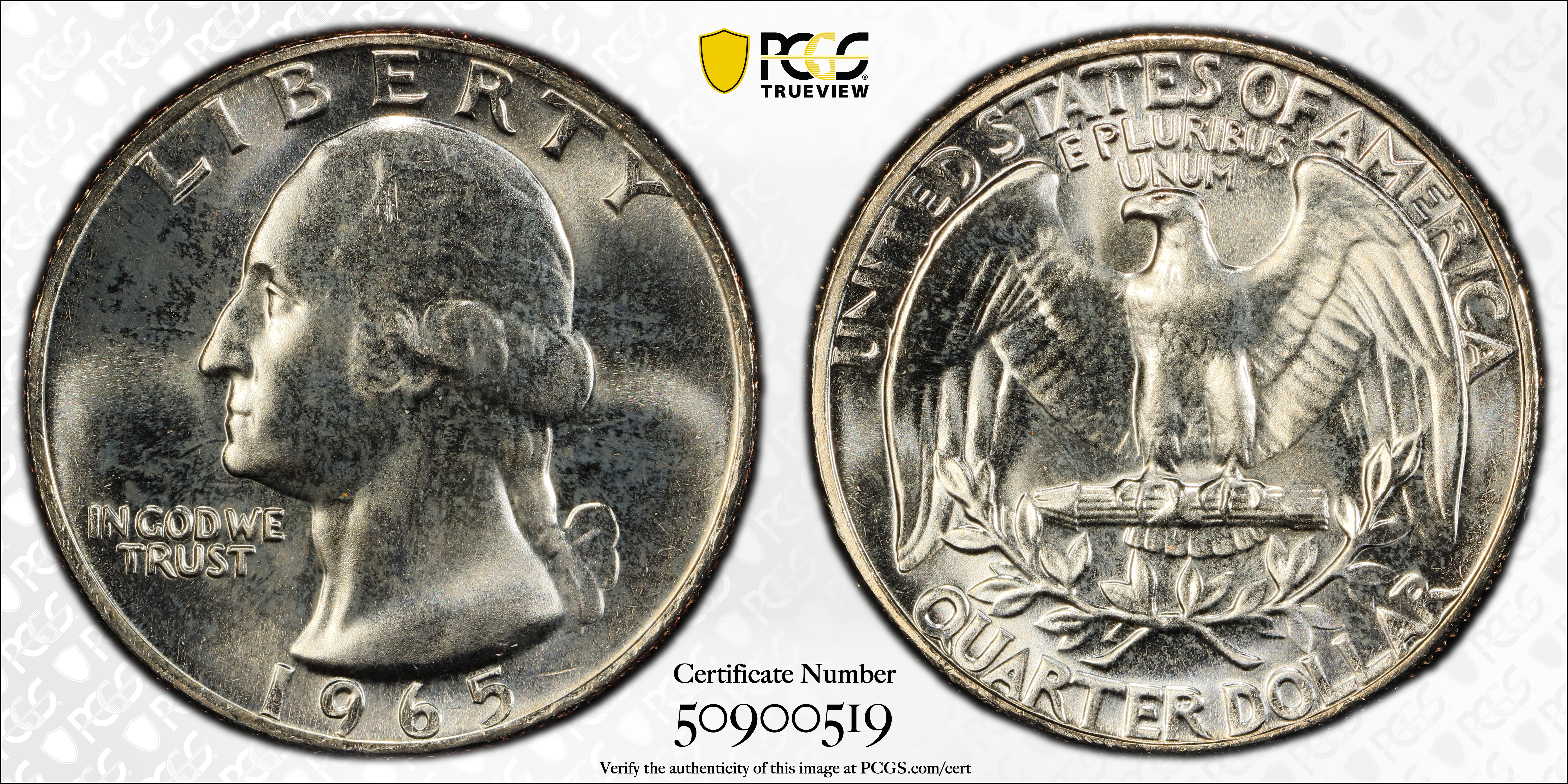 1965 25C SMS SP66 Certification #50900519, PCGS #5997