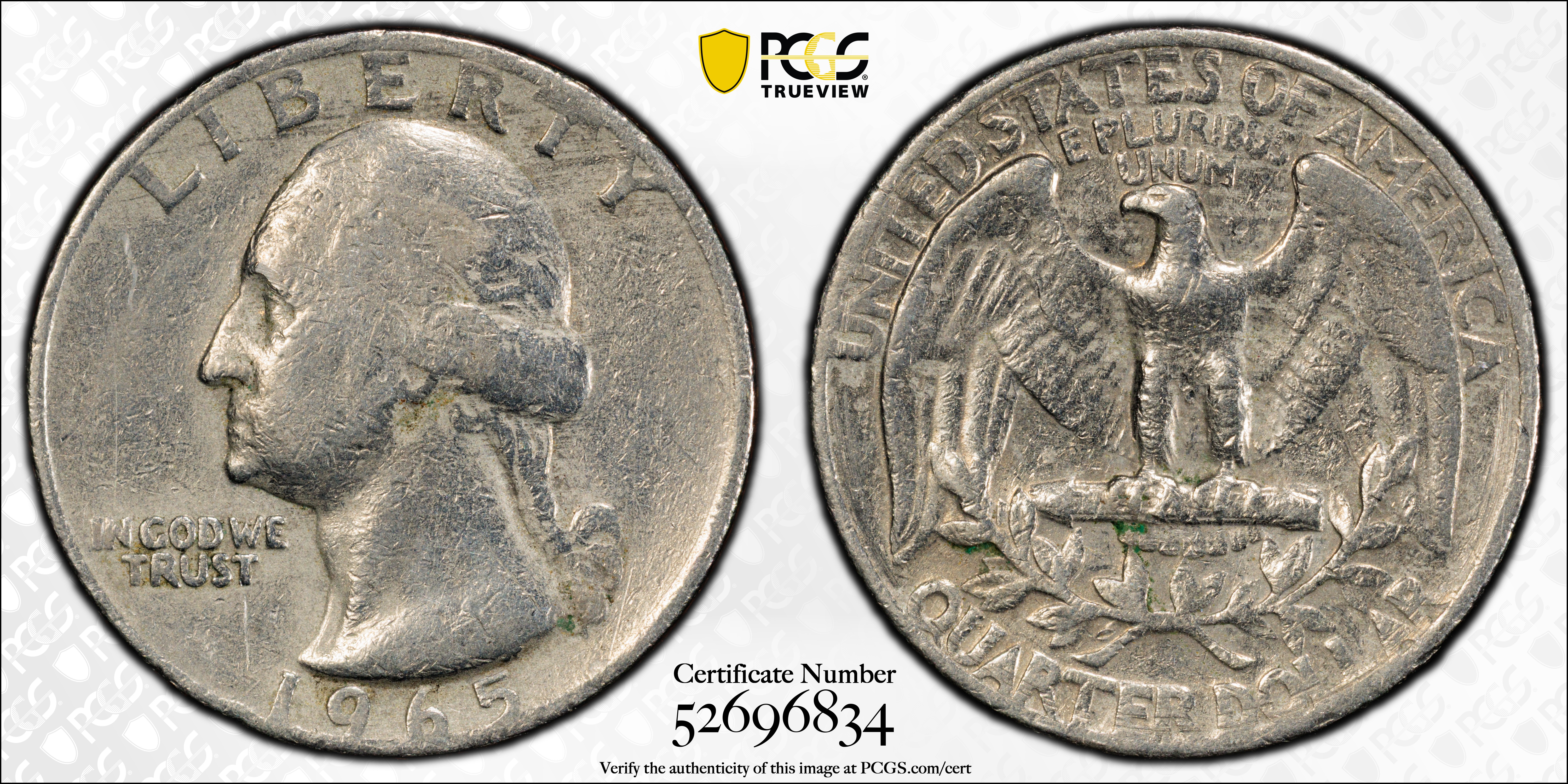 1965 25C VF20 Certification #52696834, PCGS #5878