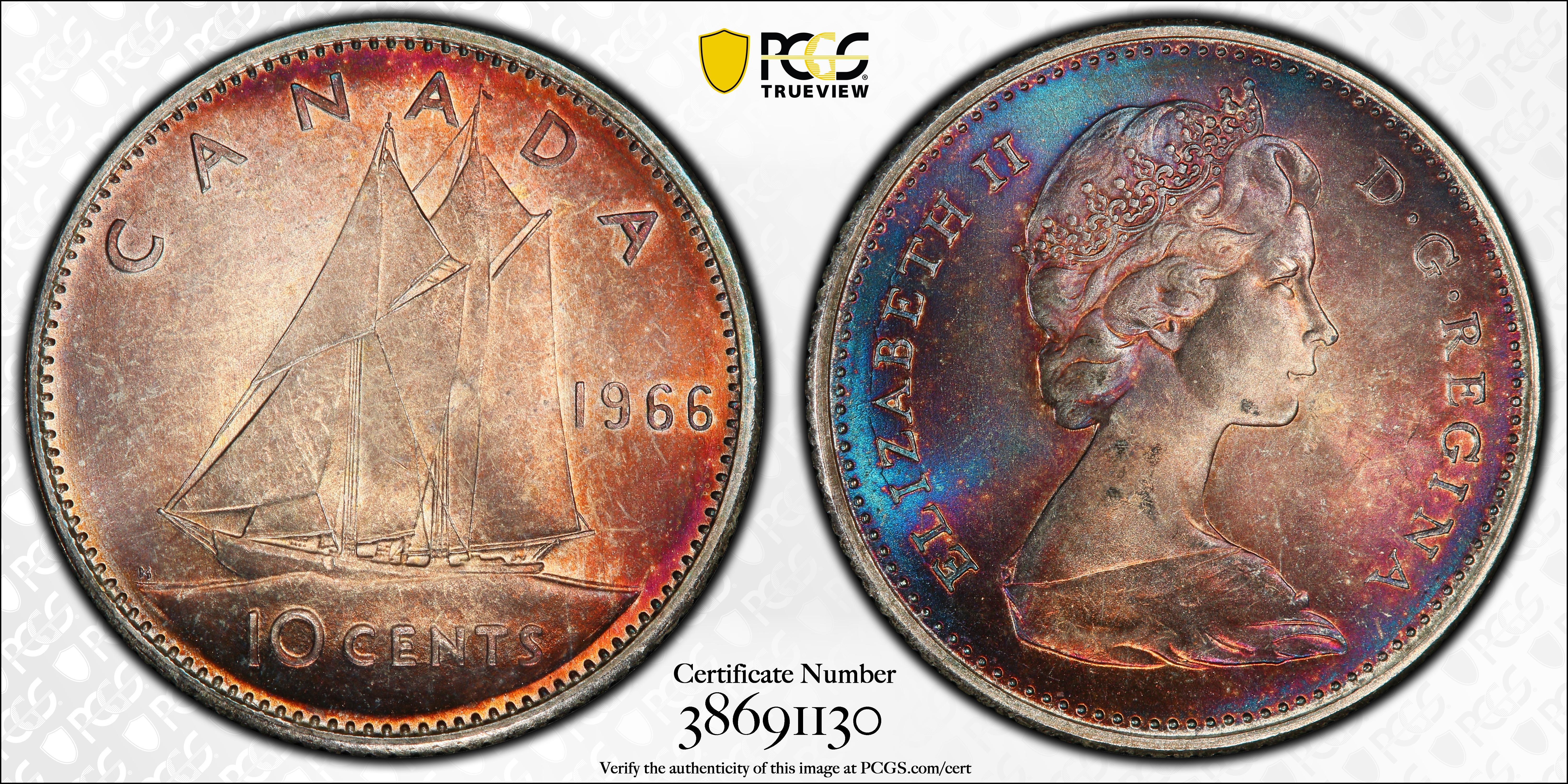 1966 10C MS65 Certification #38691130, PCGS #171145
