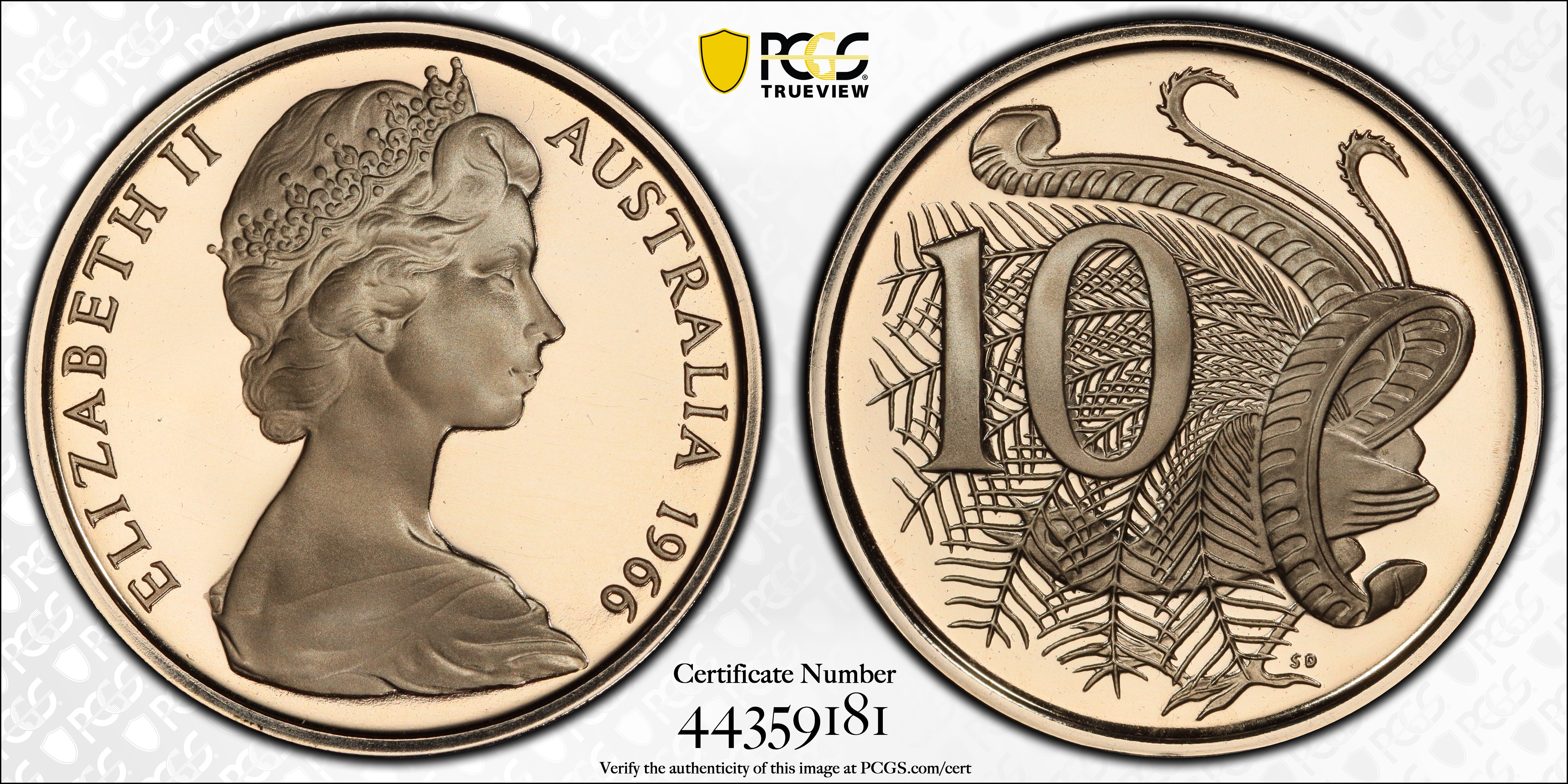 1966 10C, DCAM PR68DCAM Certification #44359181, PCGS #144119