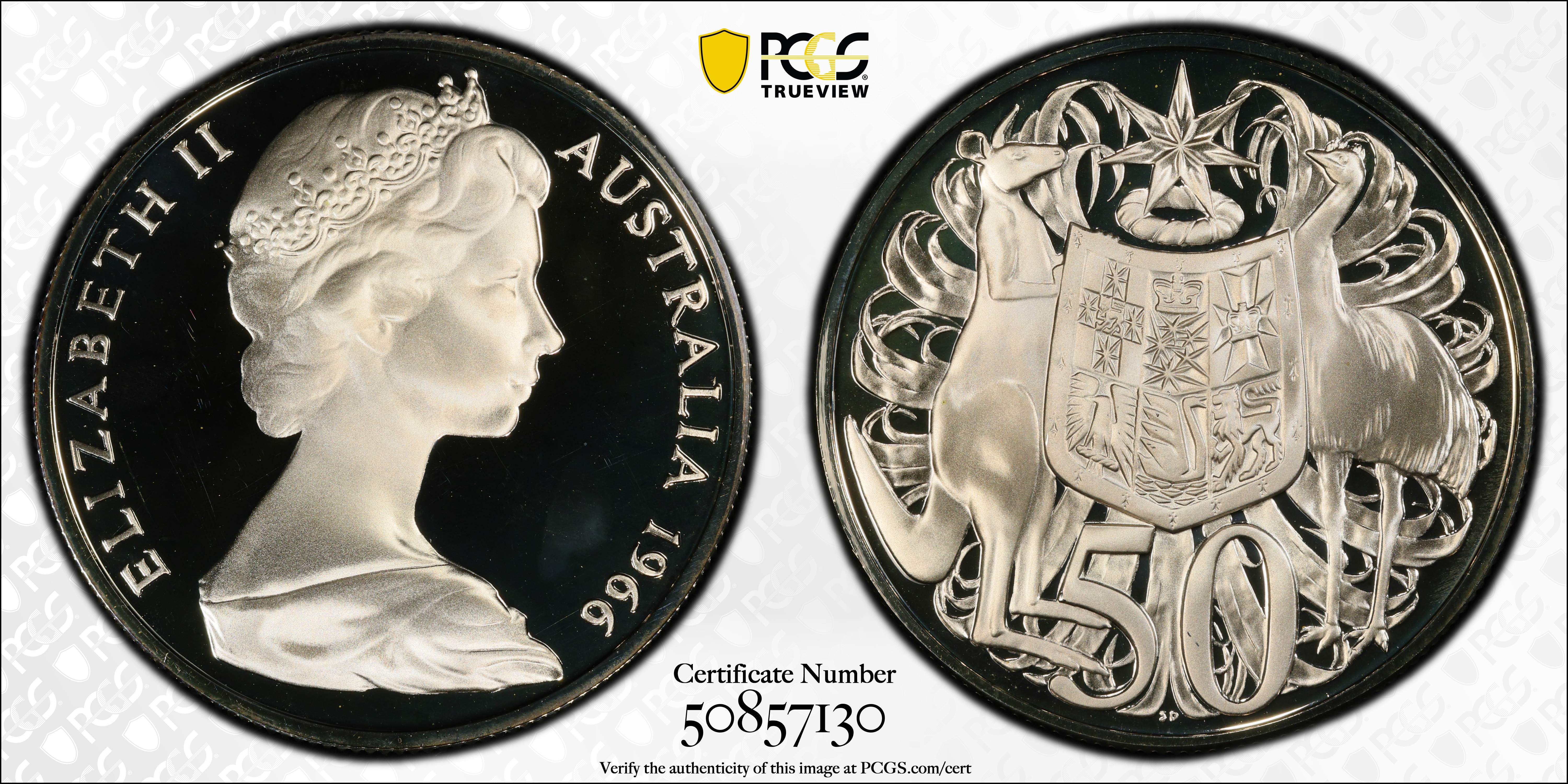 1966 50C, DCAM PR69DCAM Certification #50857130, PCGS #389095