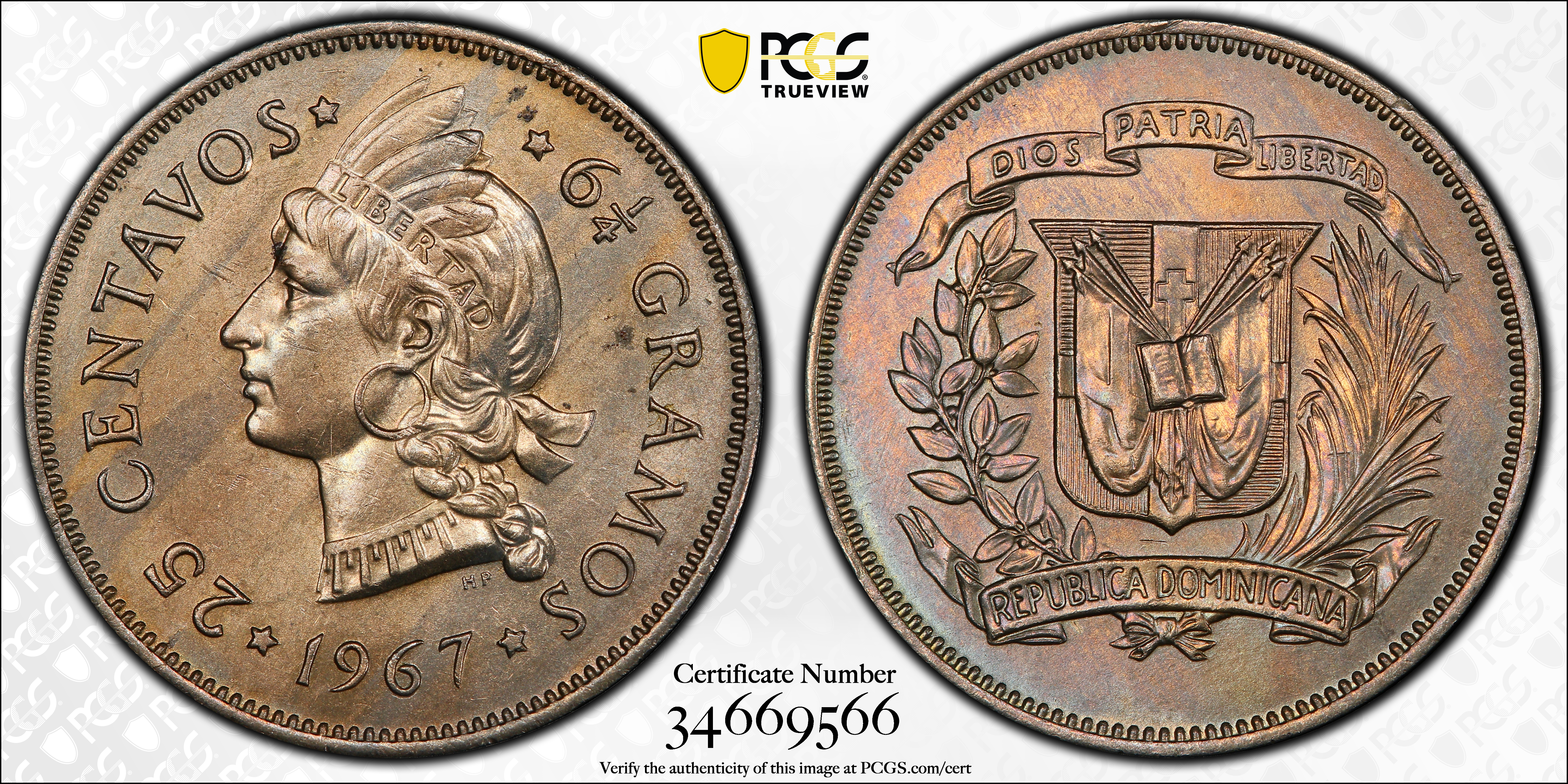 1967 25C MS63 Certification #34669566, PCGS #389602