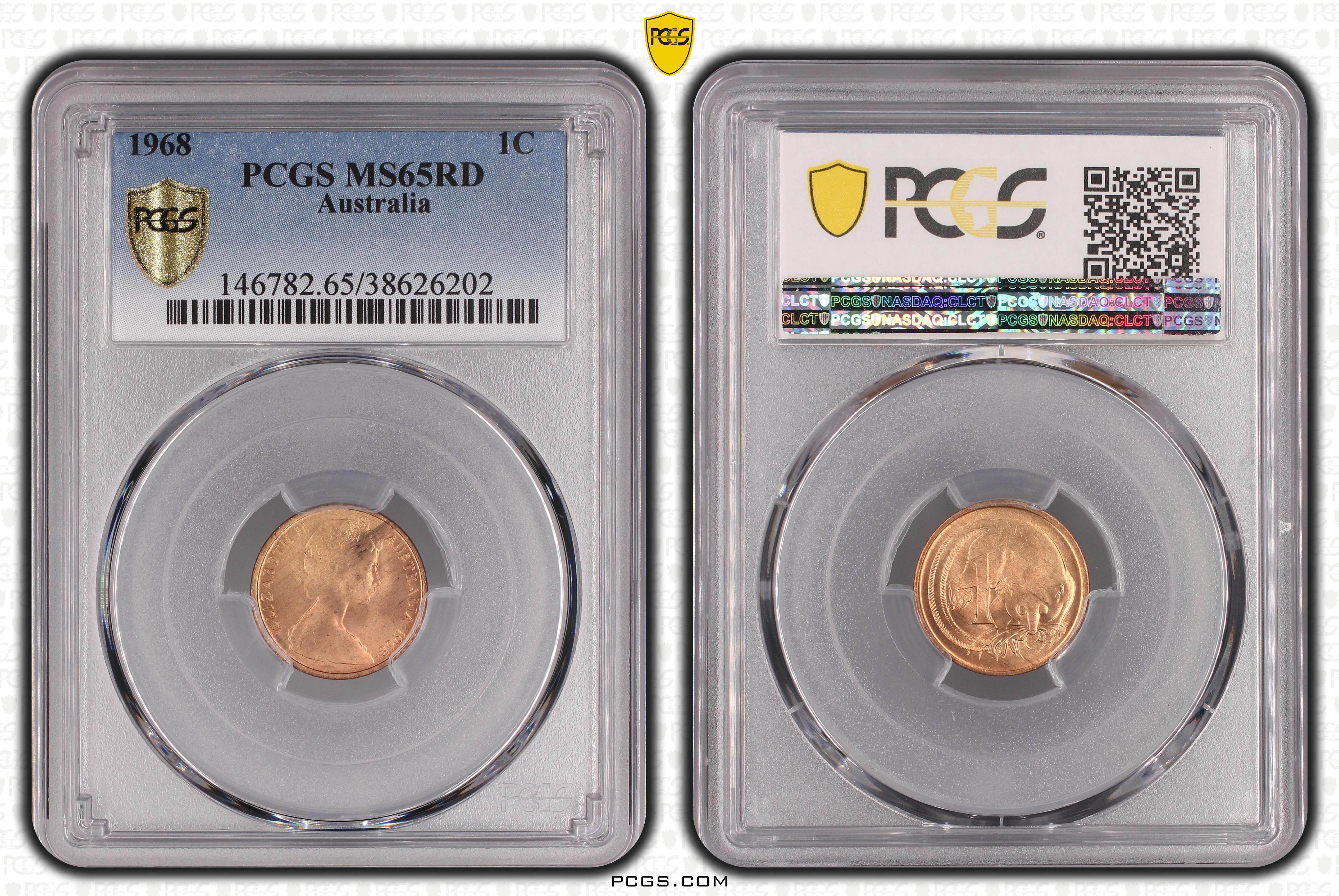 1968 1C, RD MS65RD Certification #38626202, PCGS #146782