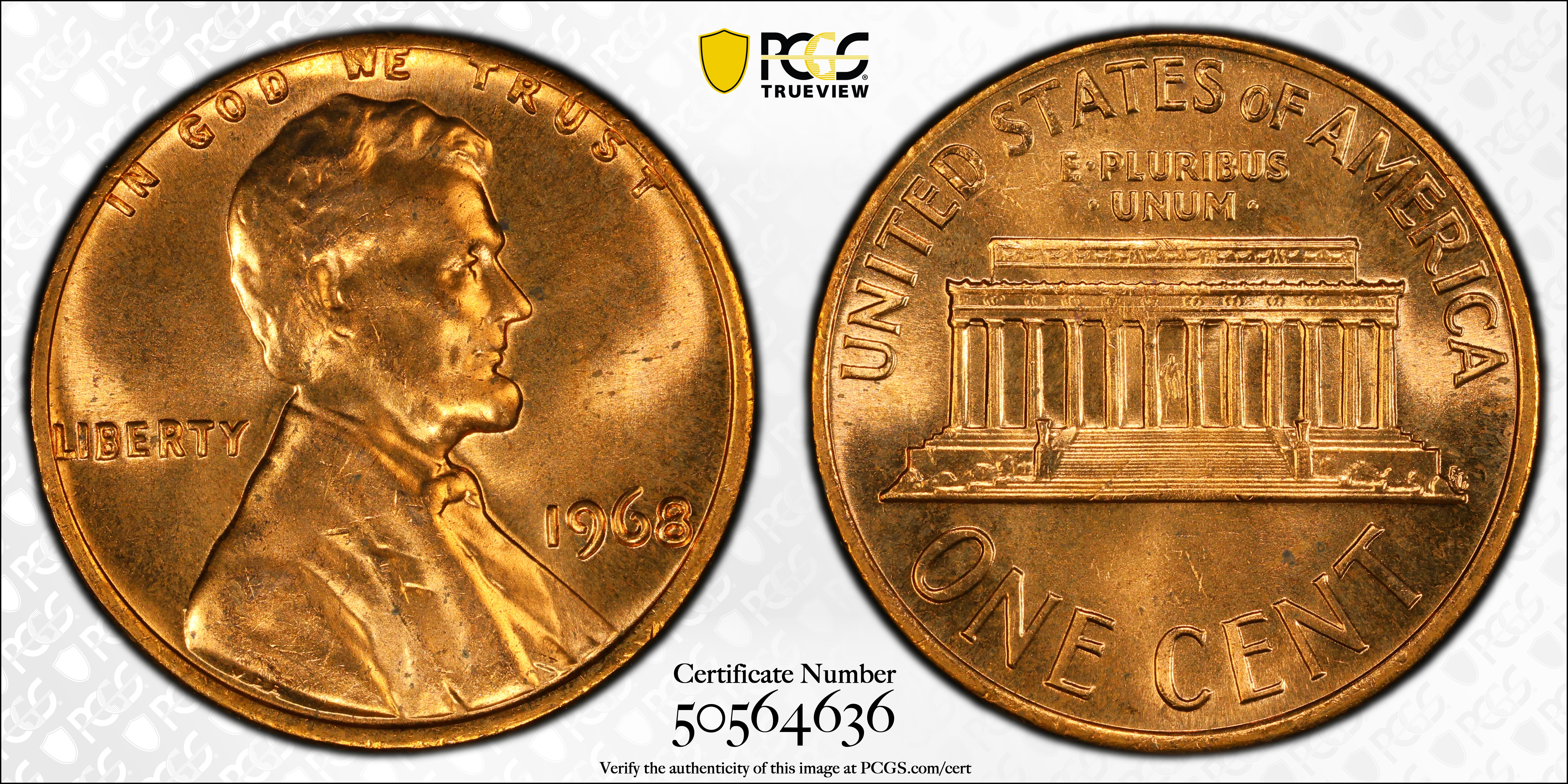 1968 1C, RD MS65RD Certification #50564636, PCGS #2905