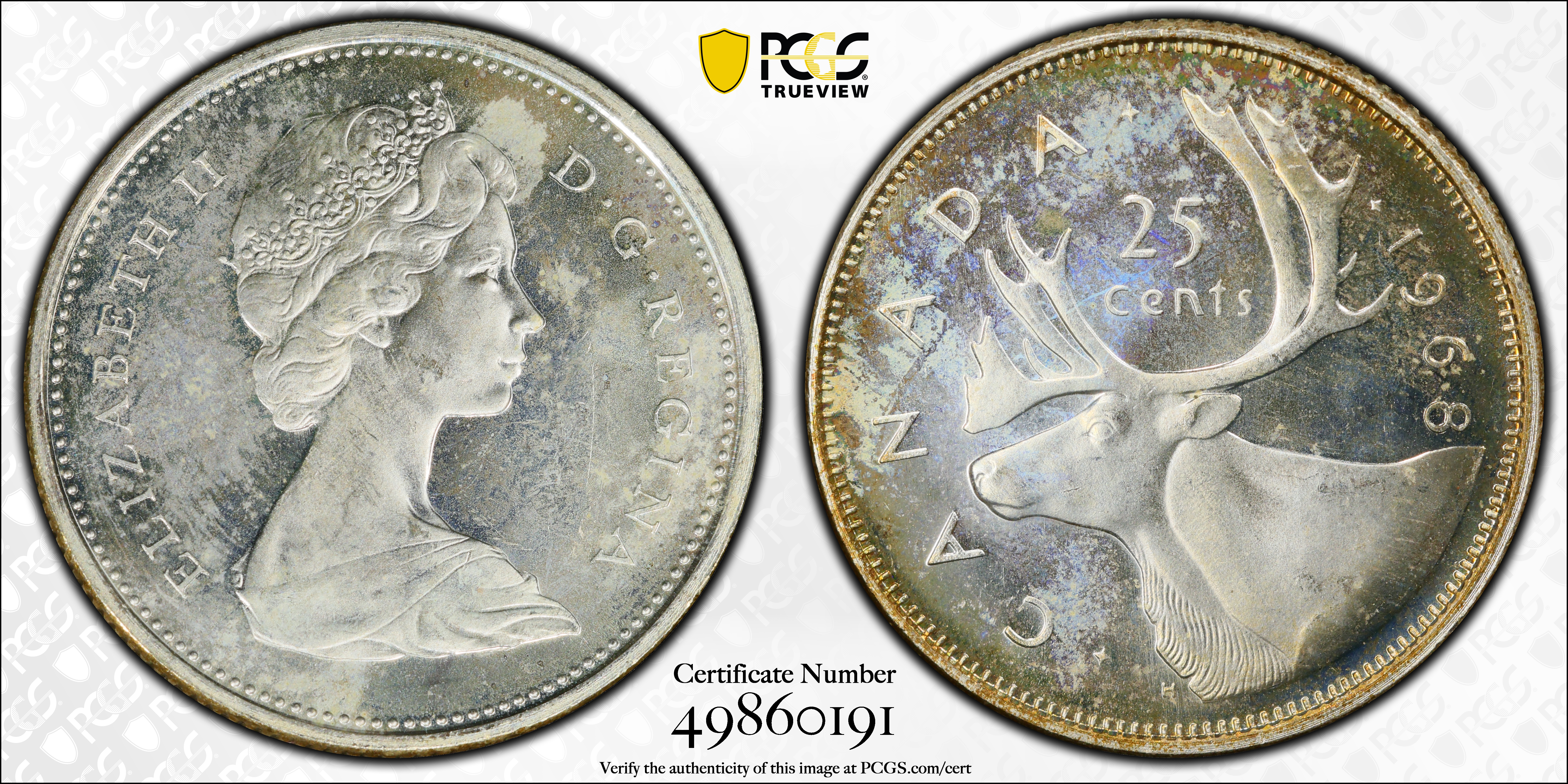 1968 25C Silver PL65 Certification #49860191, PCGS #31980