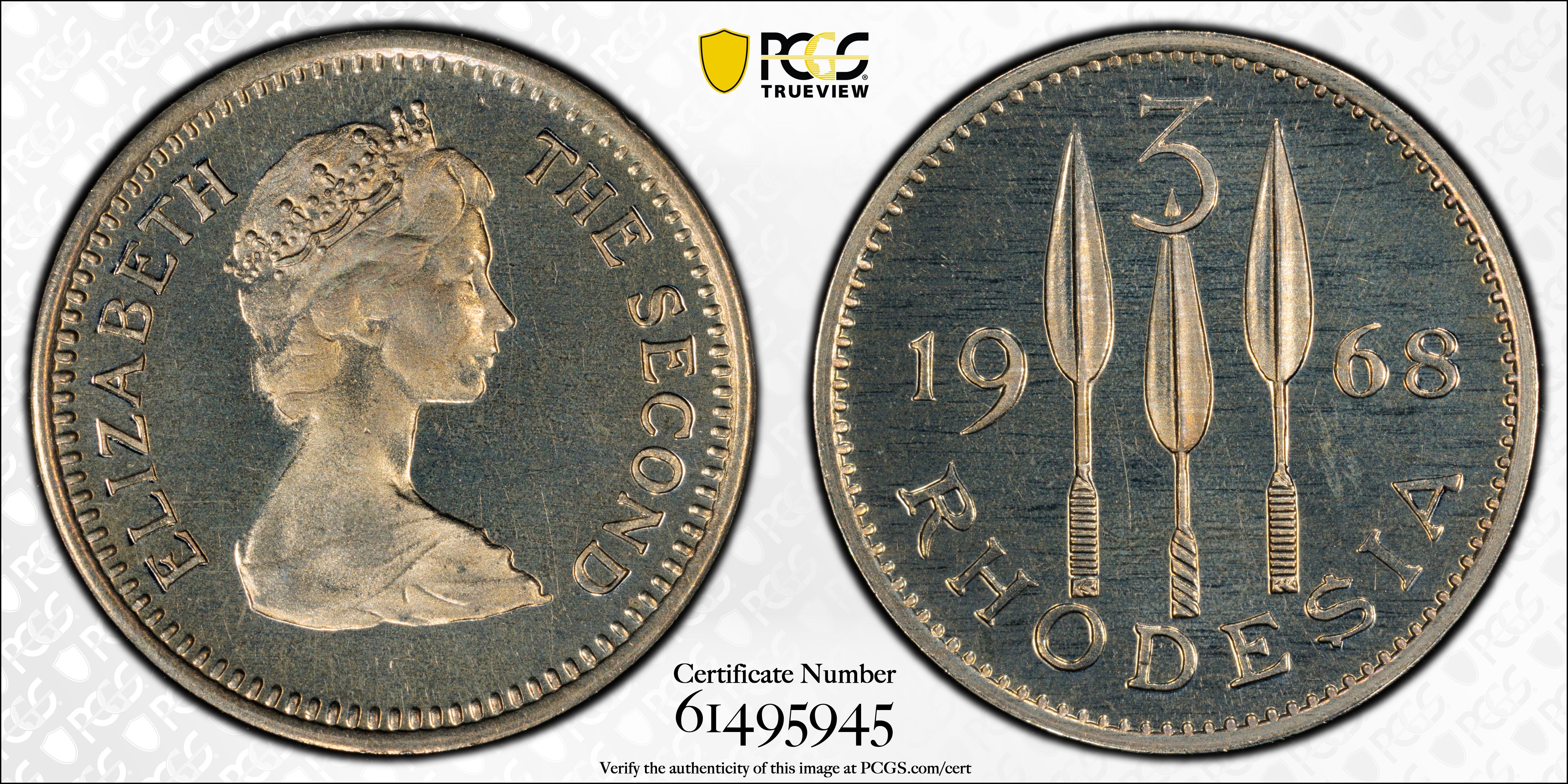 1968 3D, CAM PR68CAM Certification #61495945, PCGS #671418