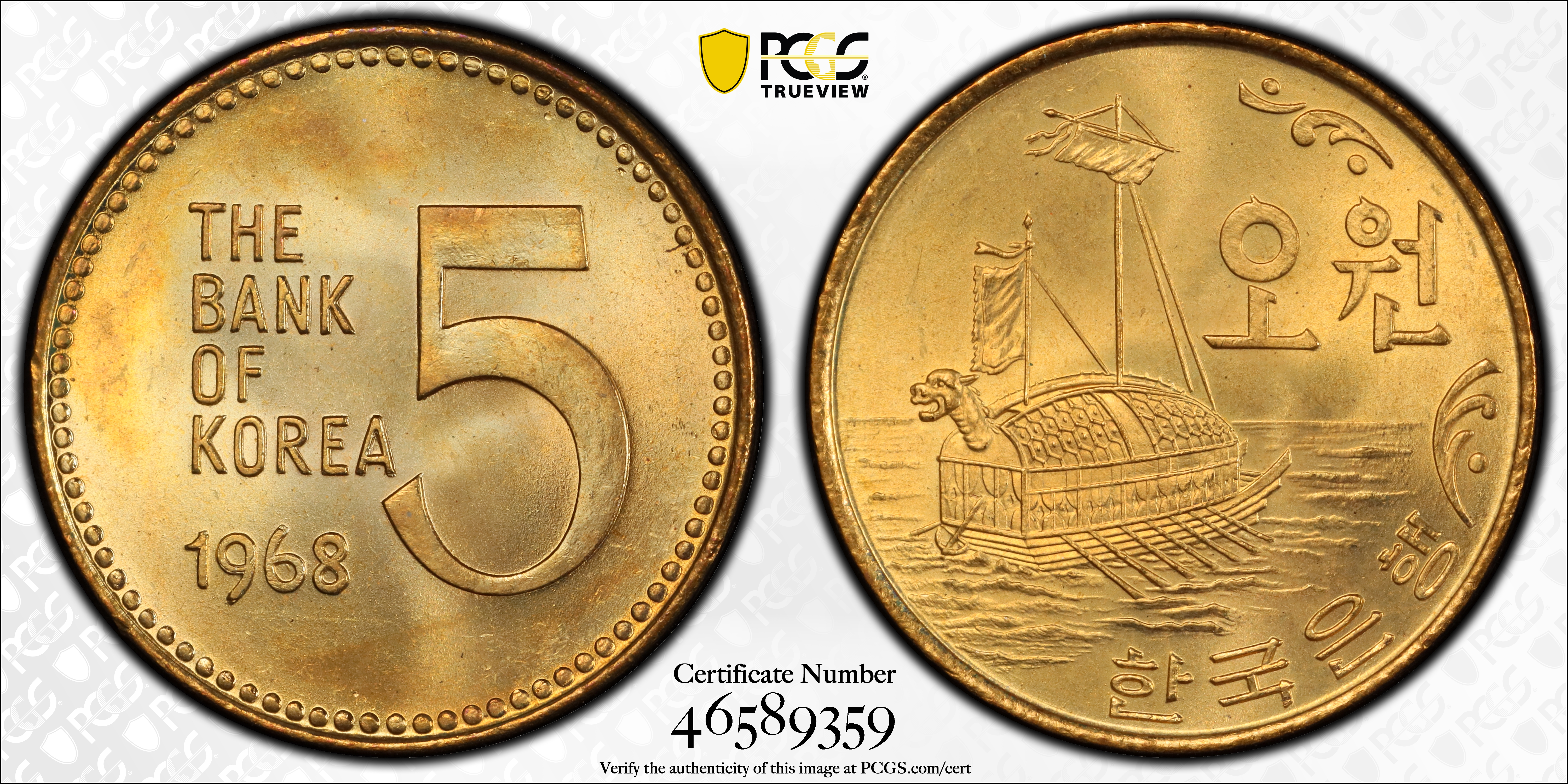 1968 5 Won MS65 Certification #46589359, PCGS #151677