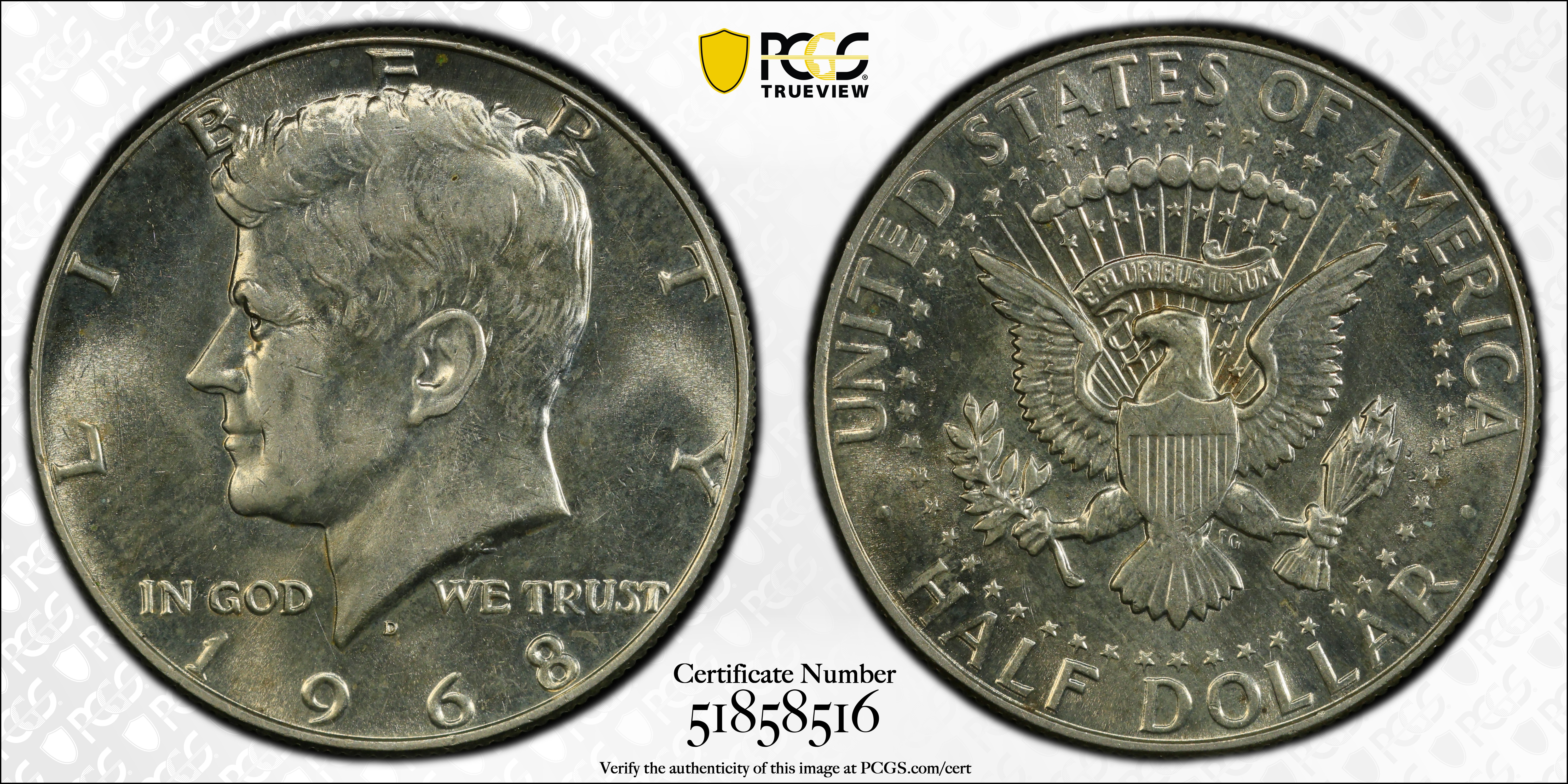 1968-D 50C AU58 Certification #51858516, PCGS #6711