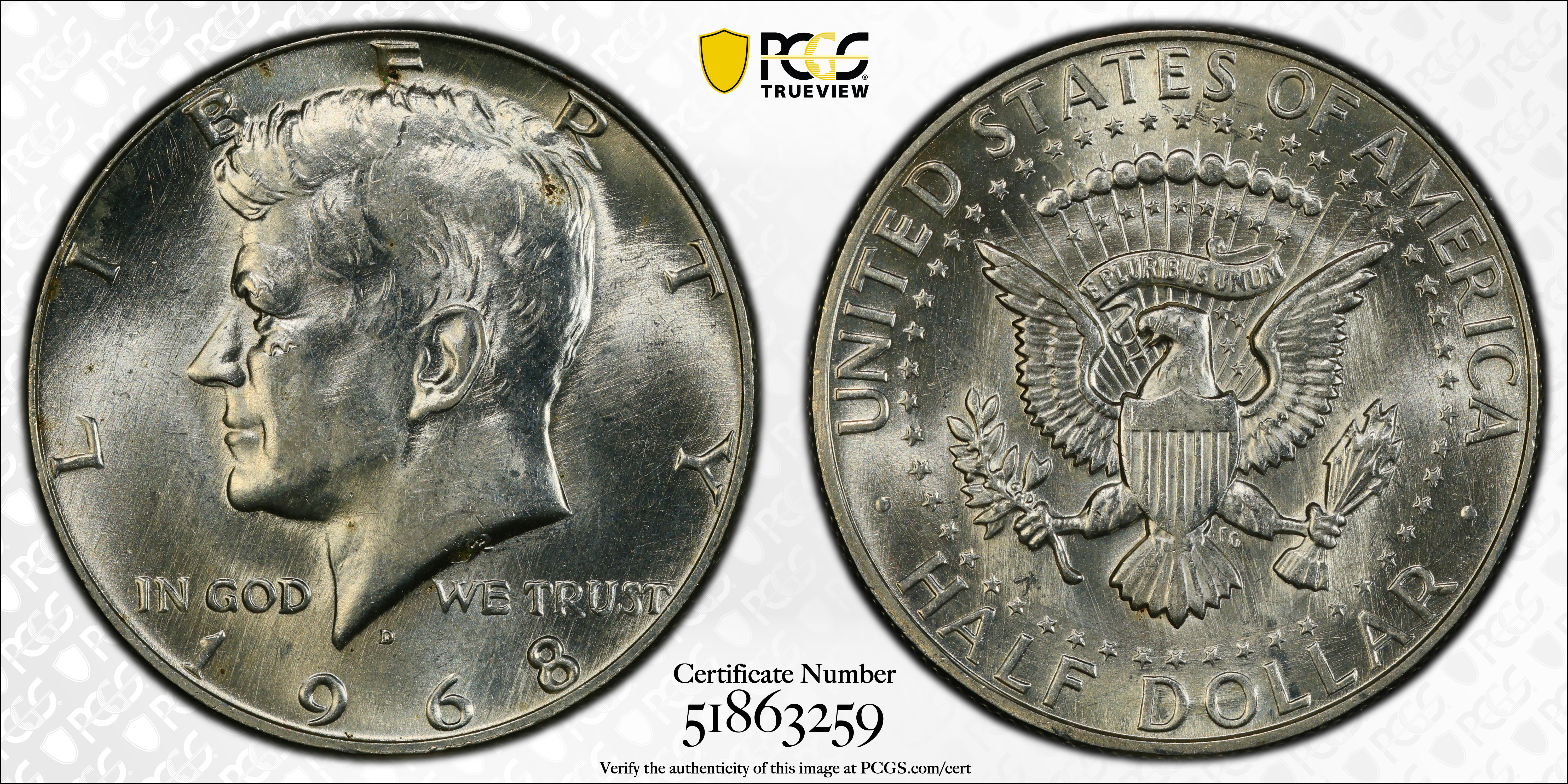 1968-D 50C MS62 Certification #51863259, PCGS #6711