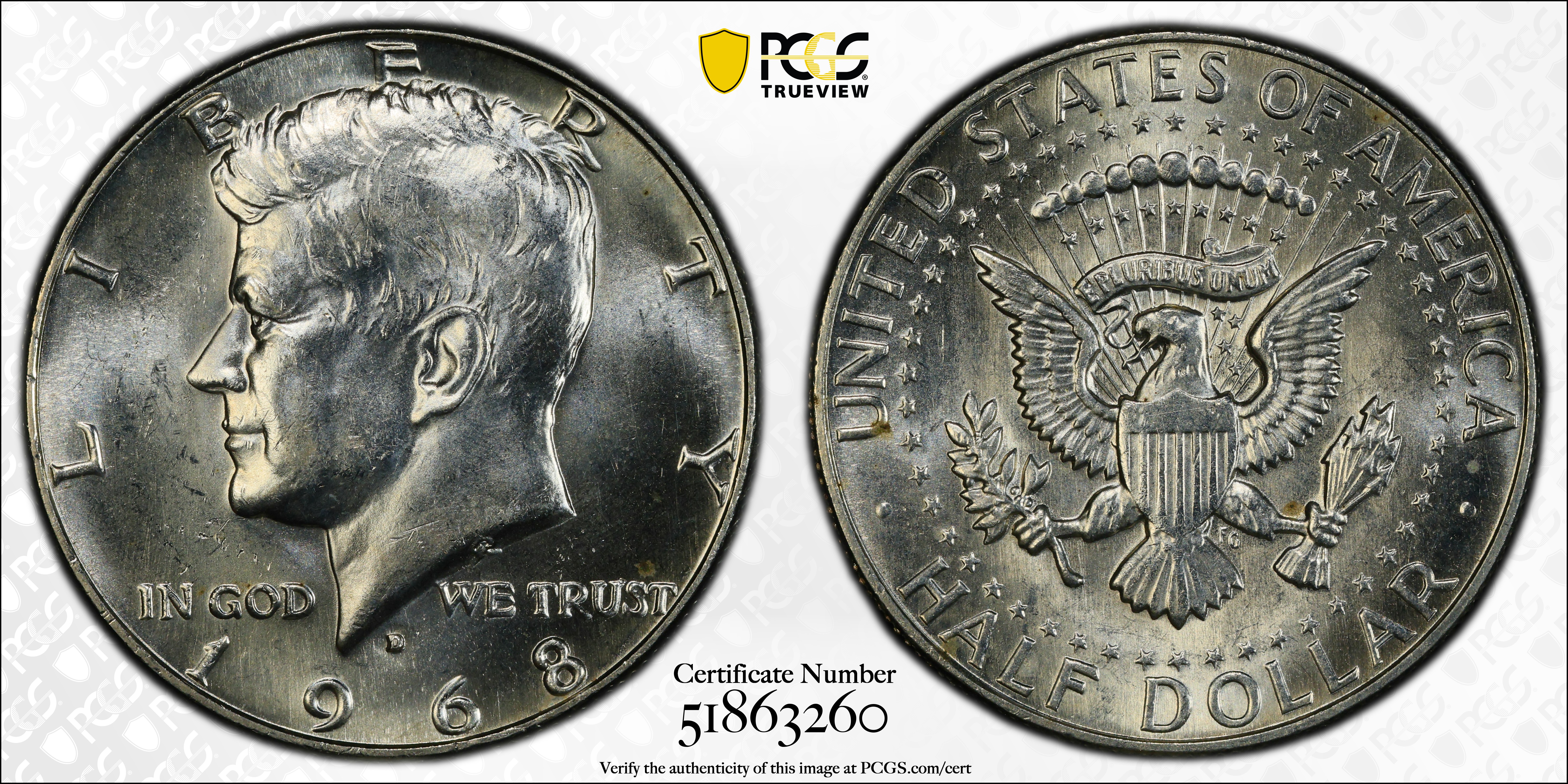 1968-D 50C MS62 Certification #51863260, PCGS #6711