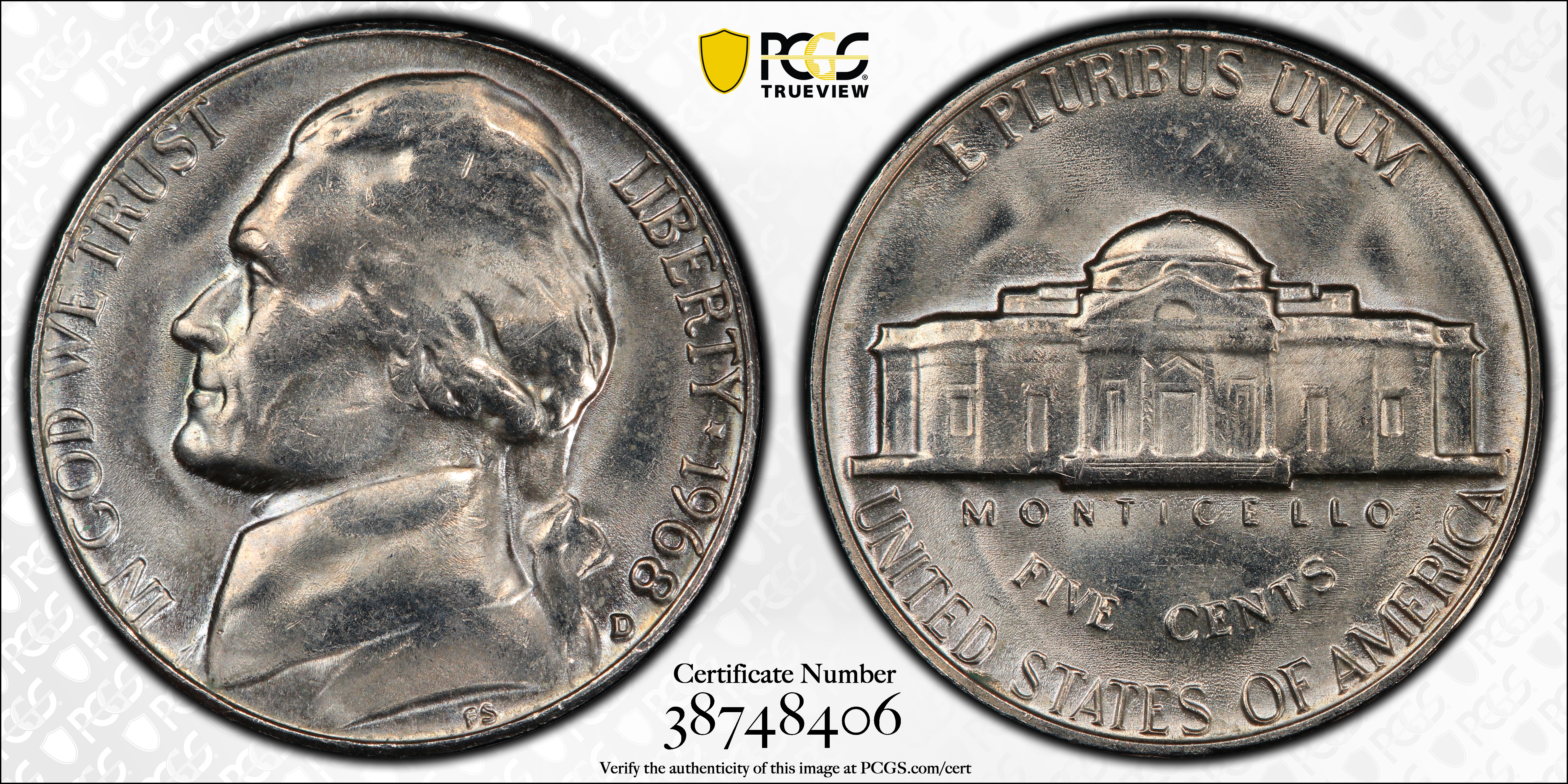 1968-D 5C MS66 Certification #38748406, PCGS #4080