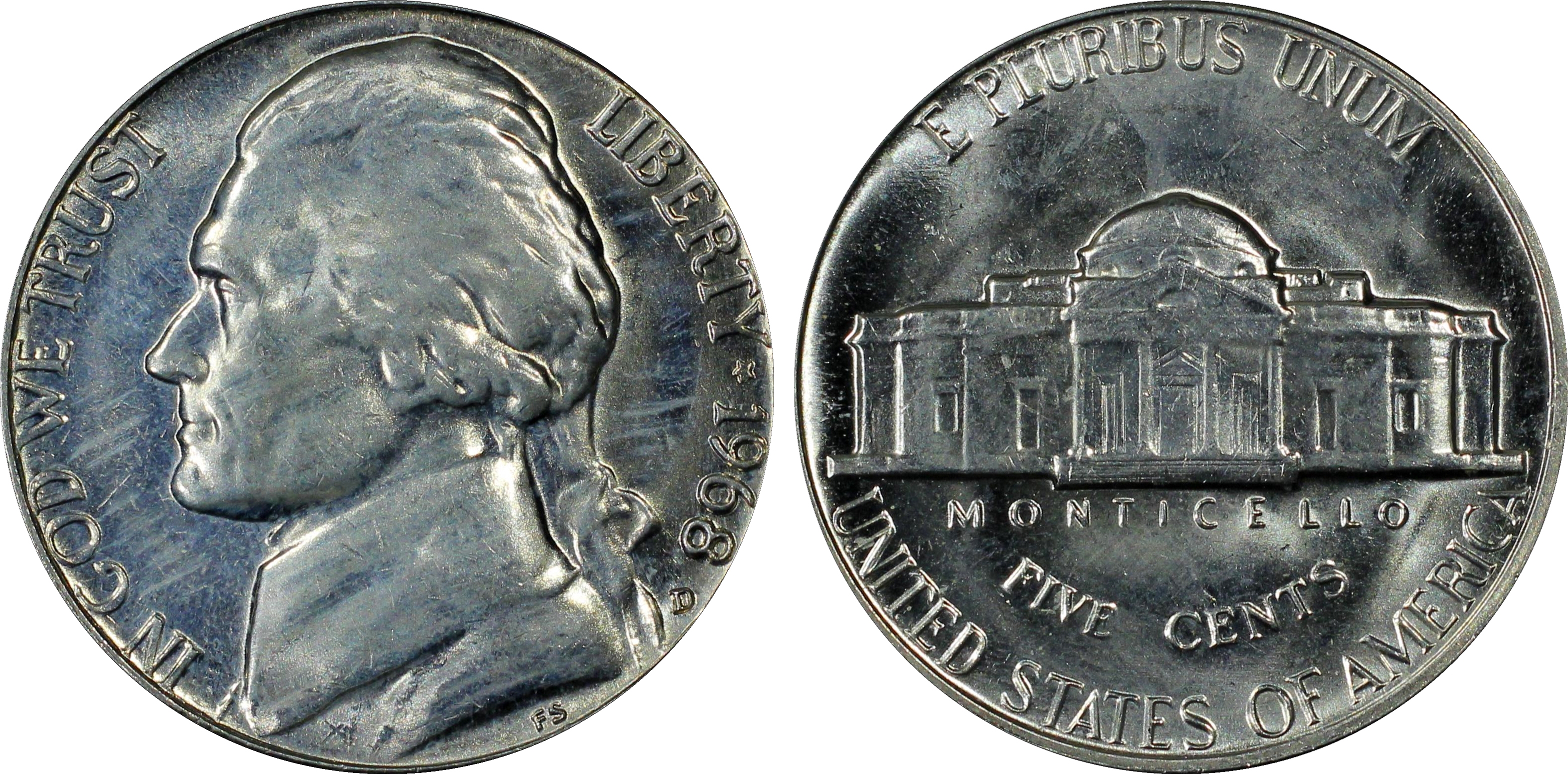 The 1968-D Nickel is a very common coin in all grades, including Gem Mint State. Like many of its contemporaries, it is an extreme rarity with Full Steps. The finest 1968-D Nickels certified by PCGS include over 180 MS66s, and just two finer.