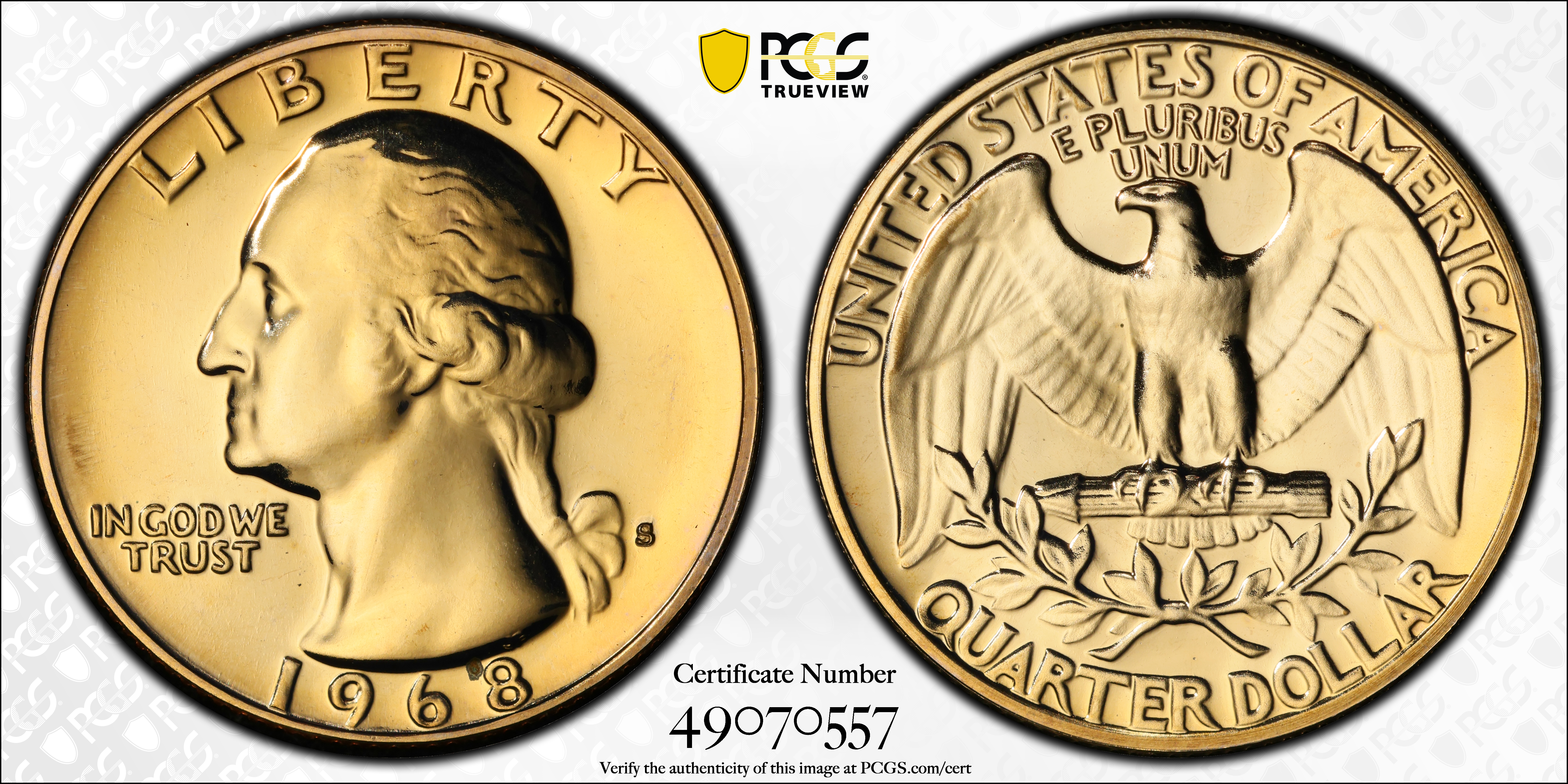 1968-S 25C Type E Reverse, FS-901 PR67 Certification #49070557, PCGS #929383