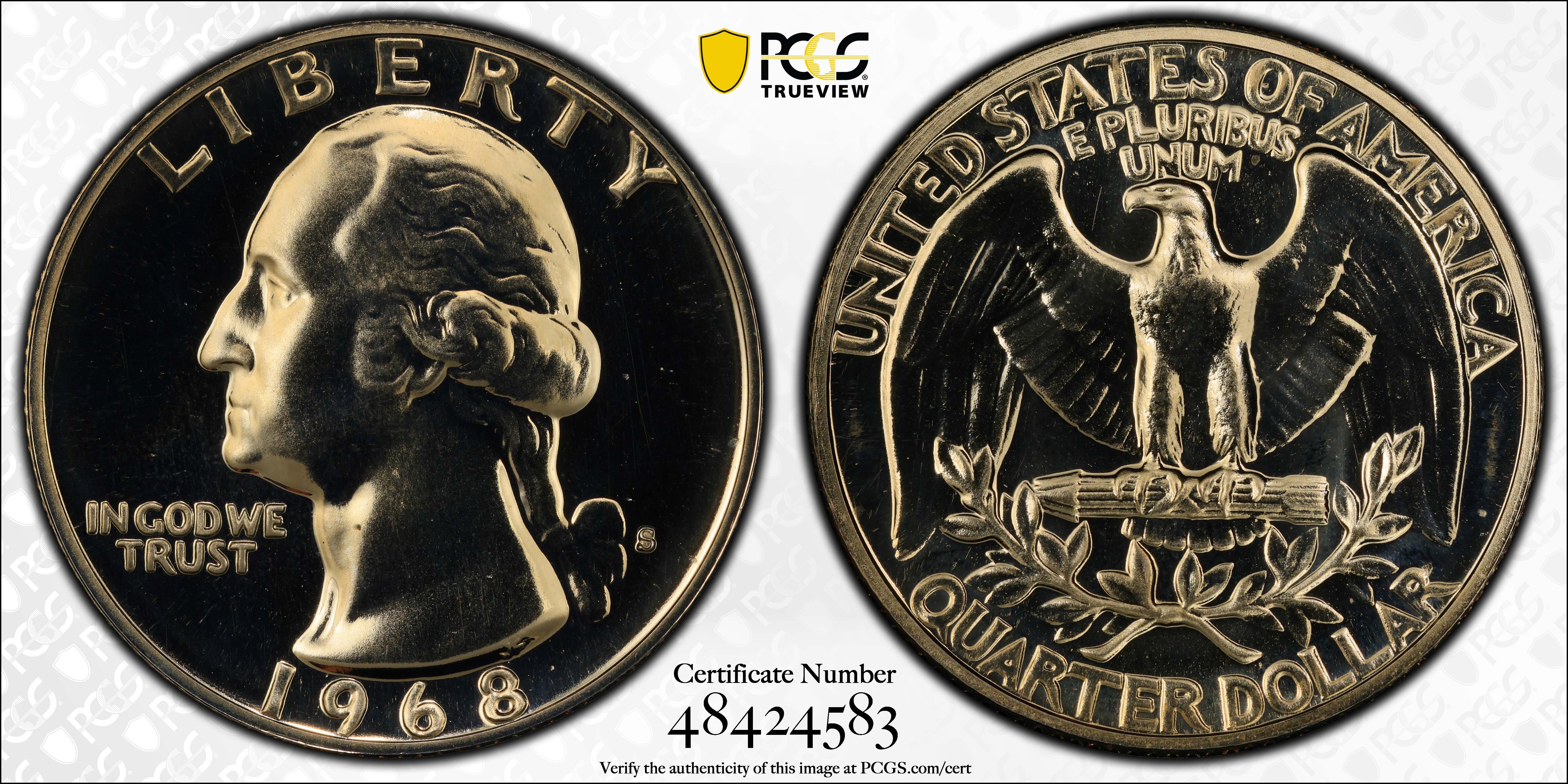 1968-S 25C Type F Reverse, FS-902 PR67 Certification #48424583, PCGS #794719