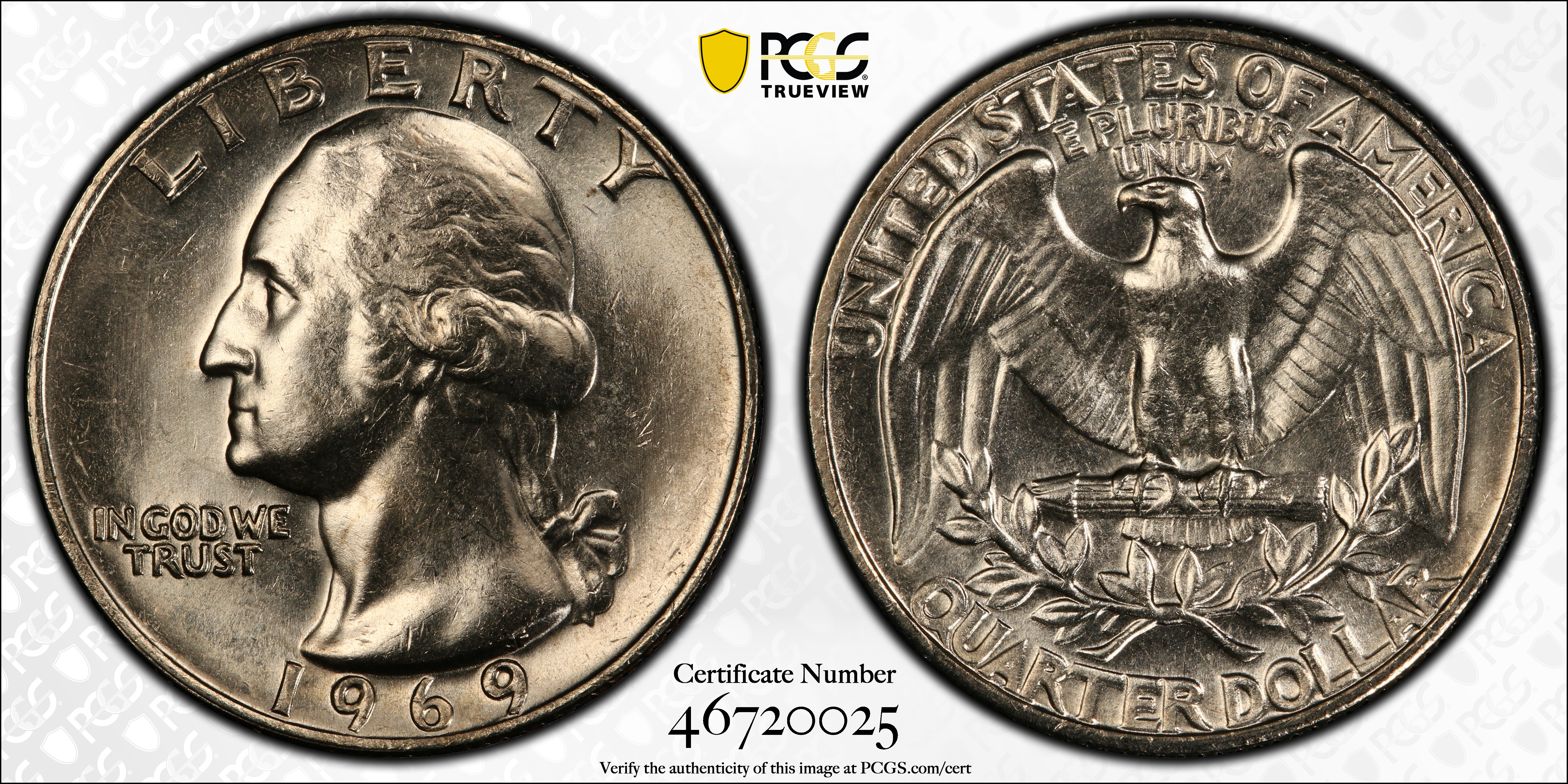1969 25C MS64 Certification #46720025, PCGS #5883