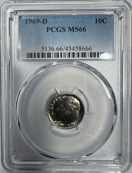 1969-D 10C MS66 Certification #45458666, PCGS #5136