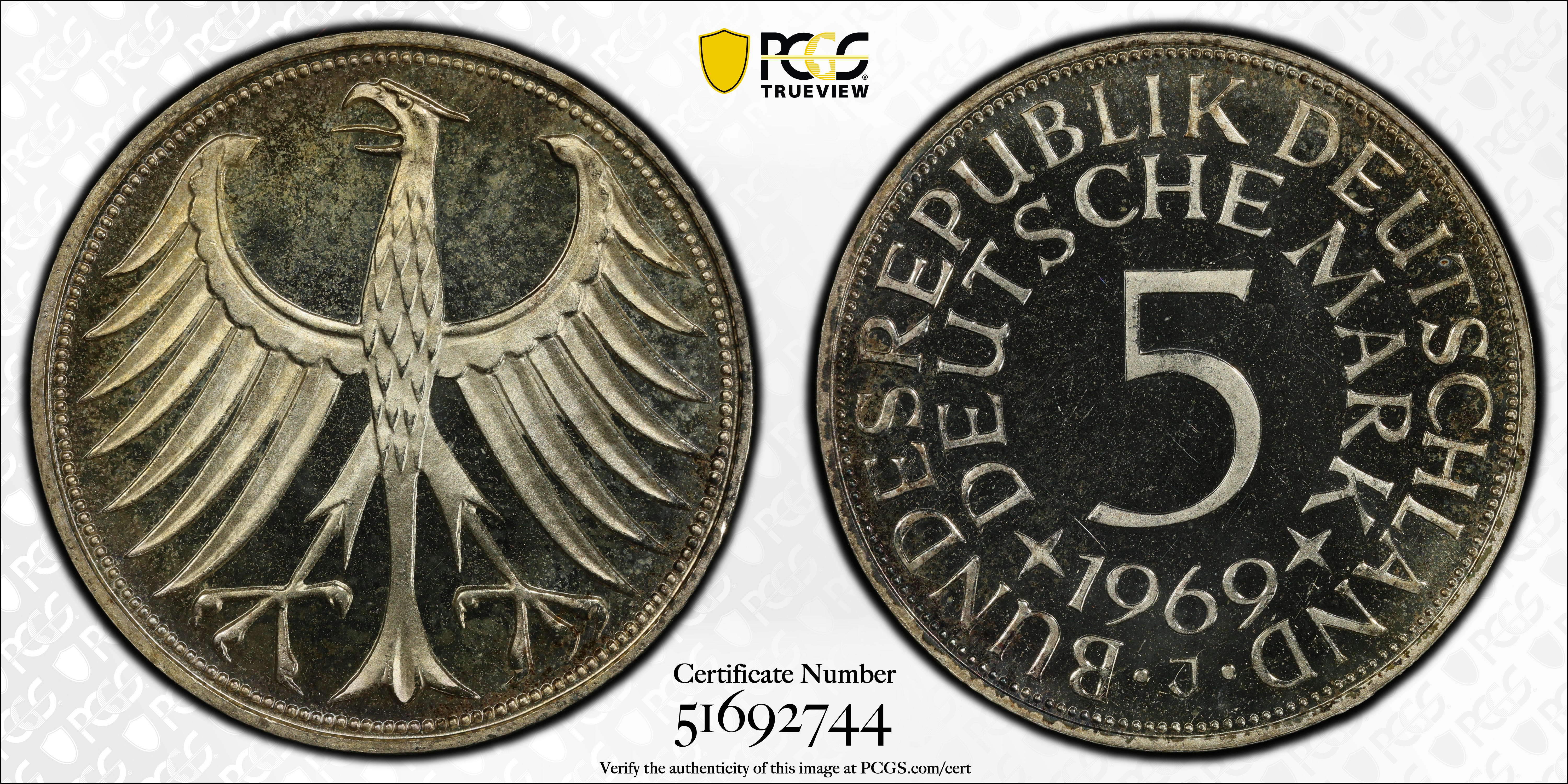 1969-J 5 Mk, CAM PR68CAM Certification #51692744, PCGS #974797