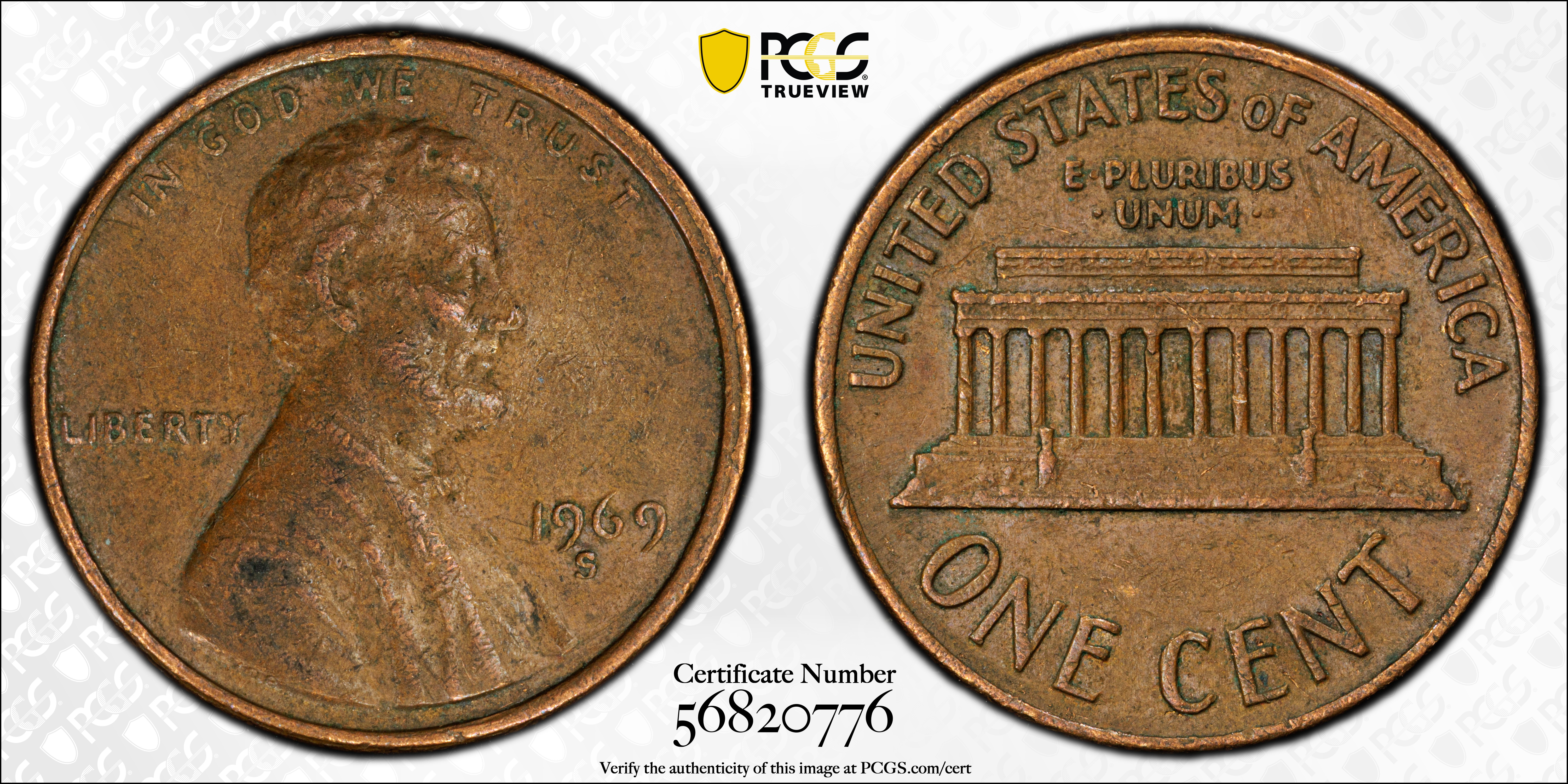 1969-S 1C, BN XF45BN Certification #56820776, PCGS #2918
