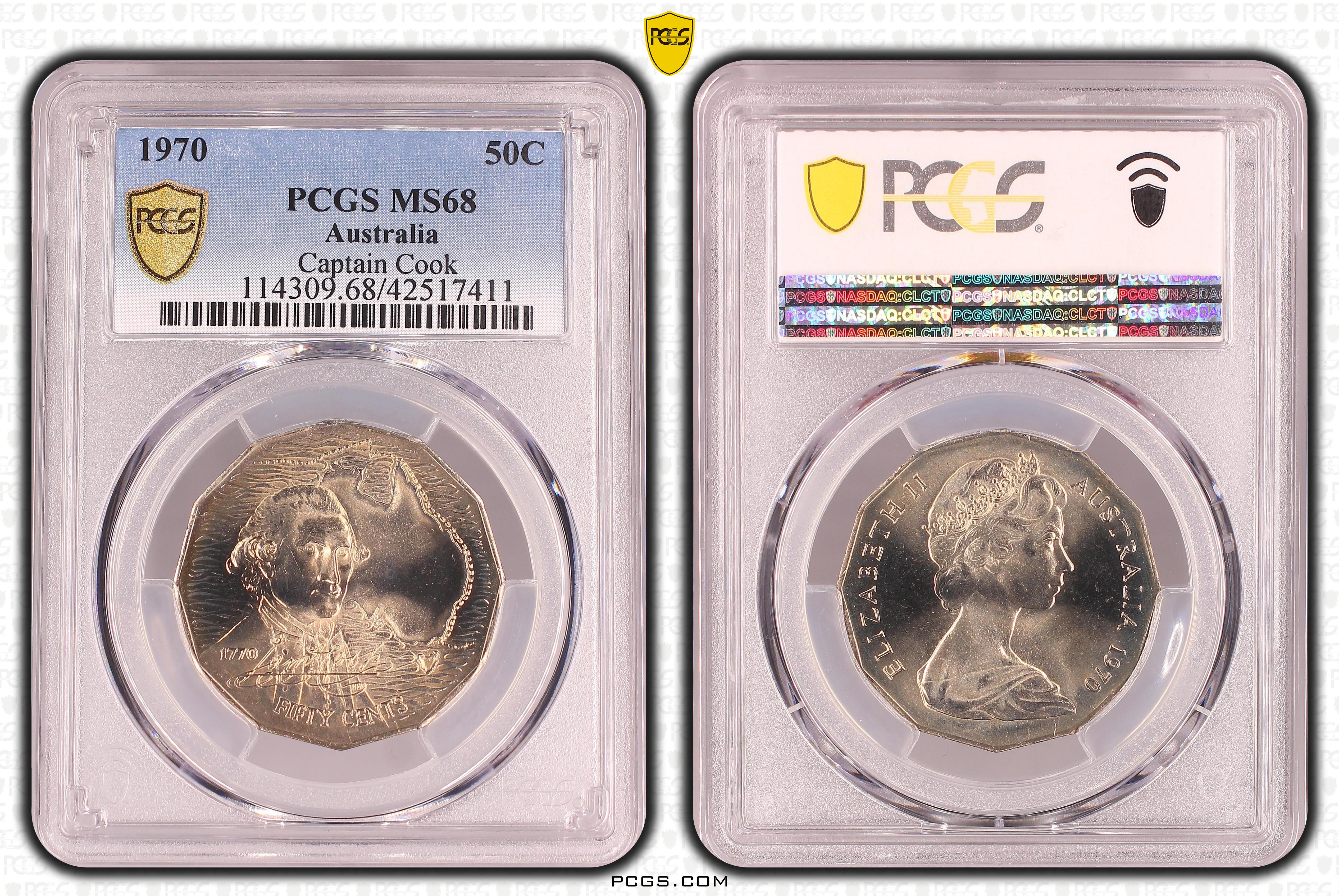 1970 50C Captain Cook MS68 Certification #42517411, PCGS #114309