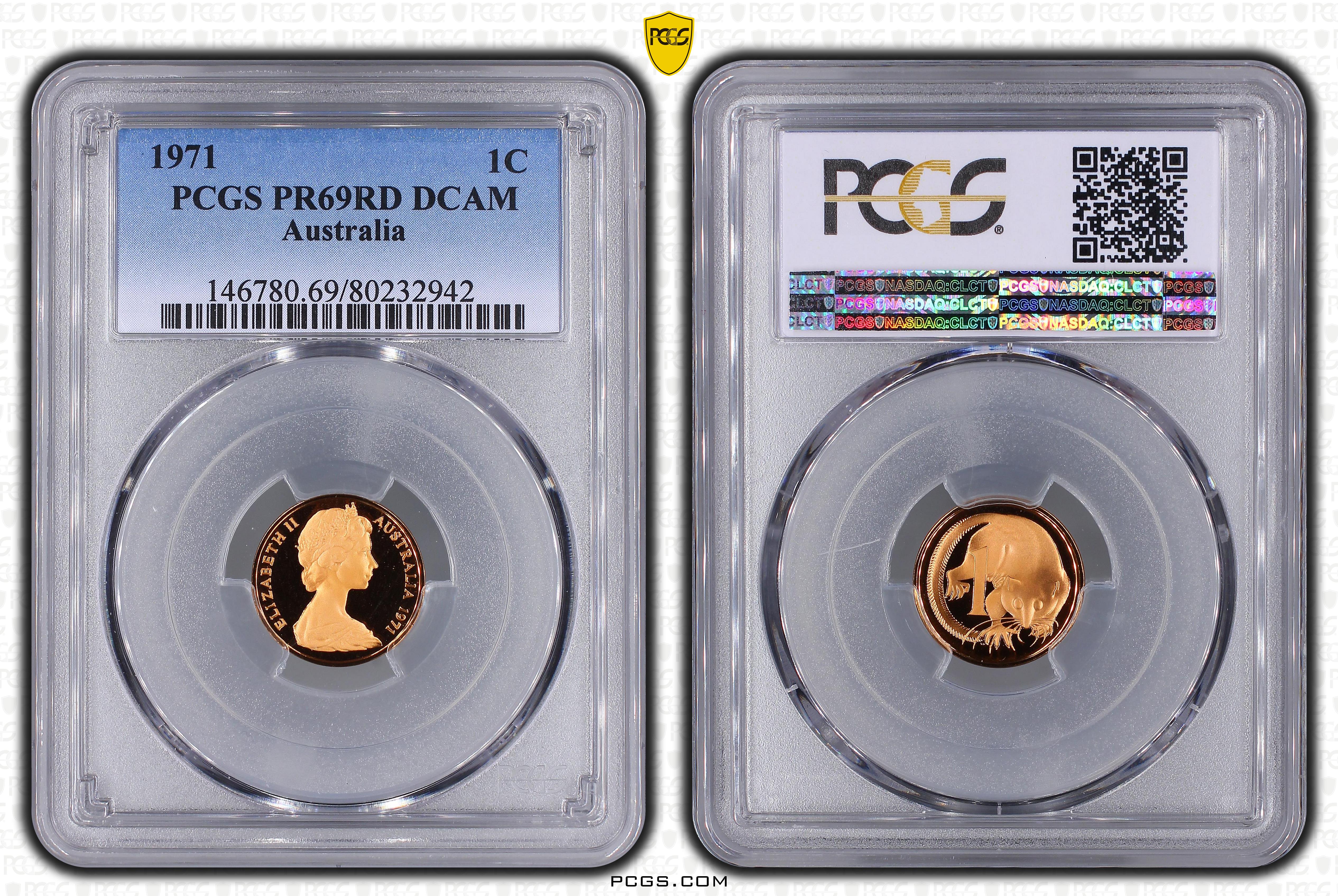 1971 Australia One Cent 1c PCGS GRADED - PR69DCAM