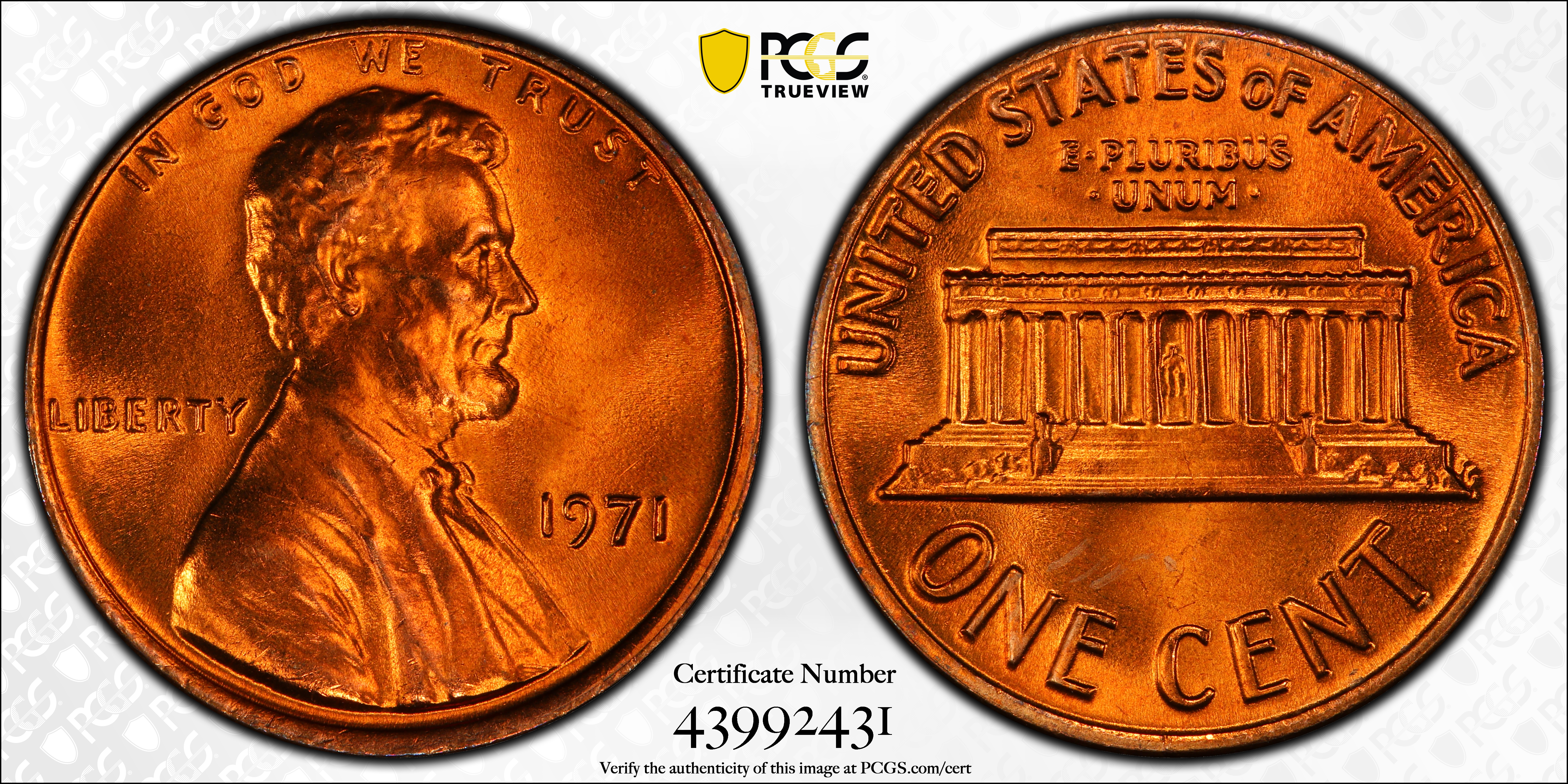 1971 1C, RD MS67+ RD Certification #43992431, PCGS #2941