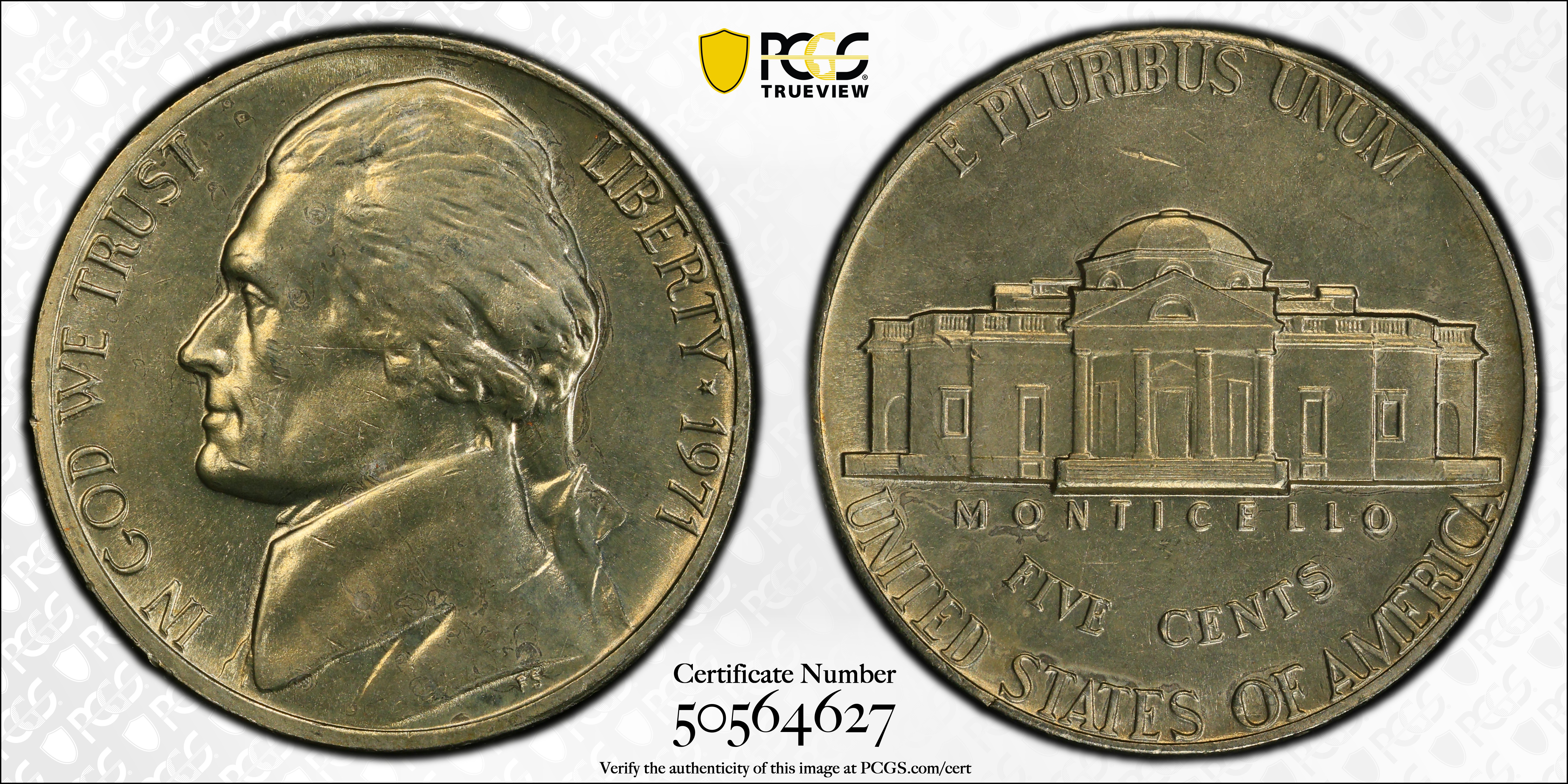 The 1971 Nickel is one of the first in a long time where Full Step versions become available in larger quantities. They are very affordable up through MS66, then the price rises dramatically as the population drops off a cliff in MS67. The finest examples certified by PCGS include six at the MS67FS level.