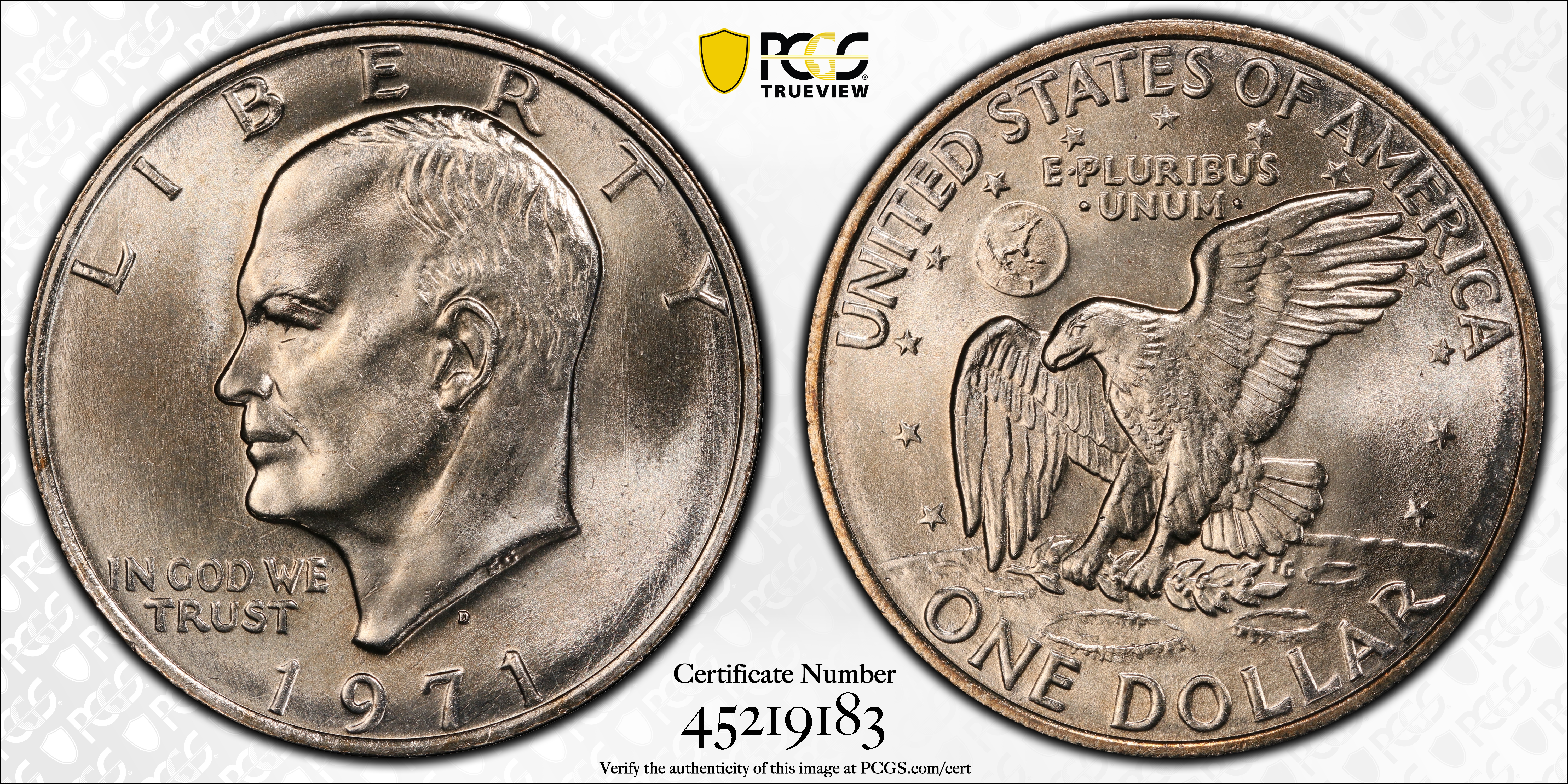 1971-D $1 MS65 Certification #45219183, PCGS #7407
