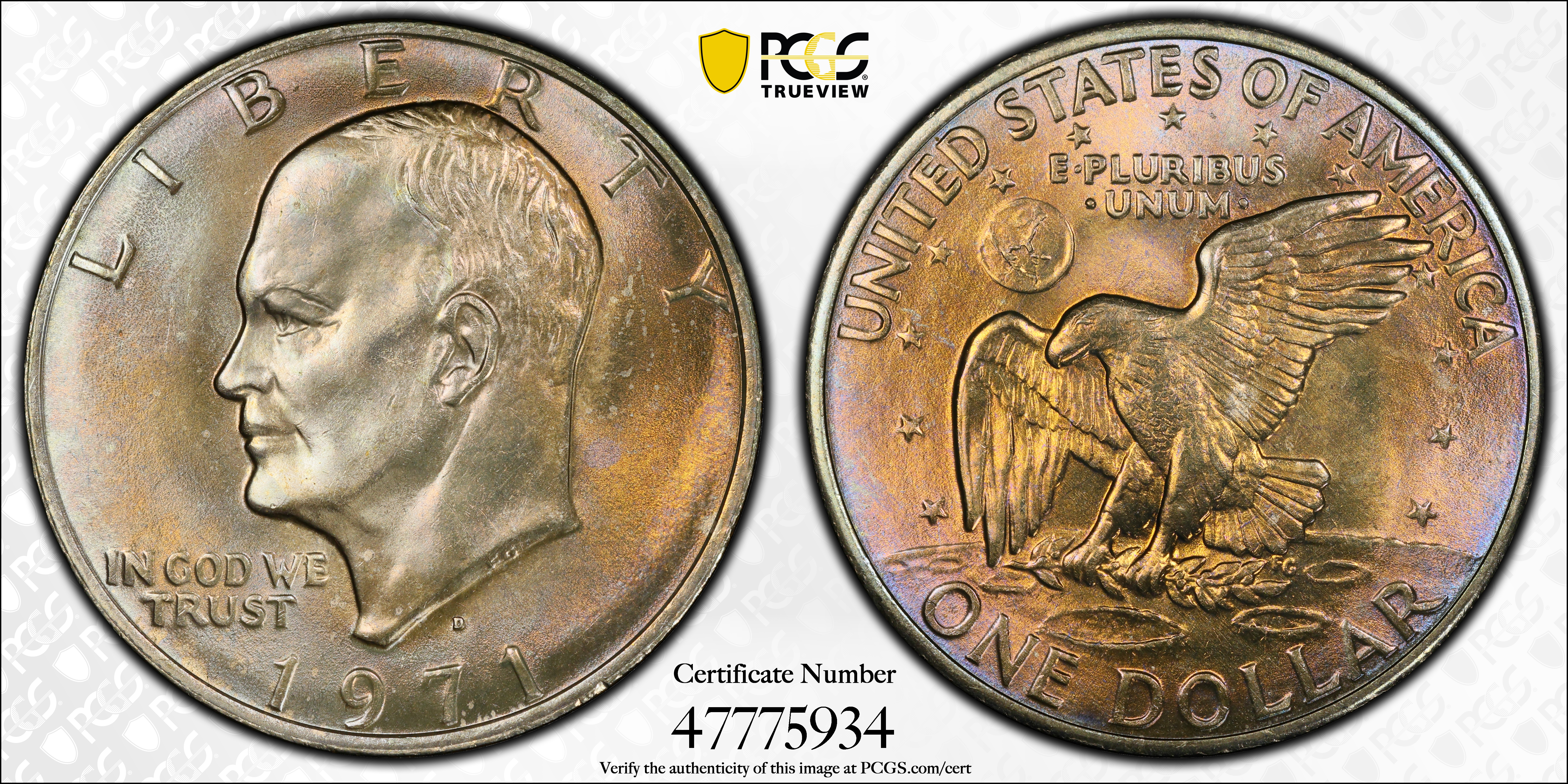 1971-D $1 MS67 Certification #47775934, PCGS #7407
