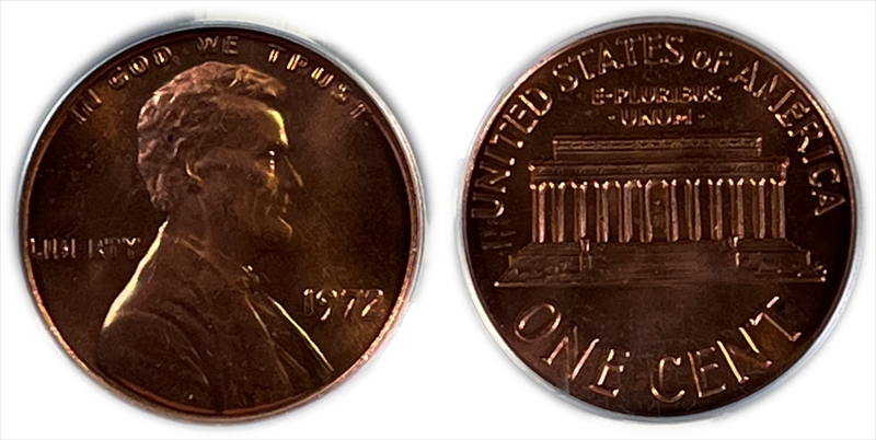 1972 1C Doubled Die Obverse, RD MS65RD Certification #14019726, PCGS #2950