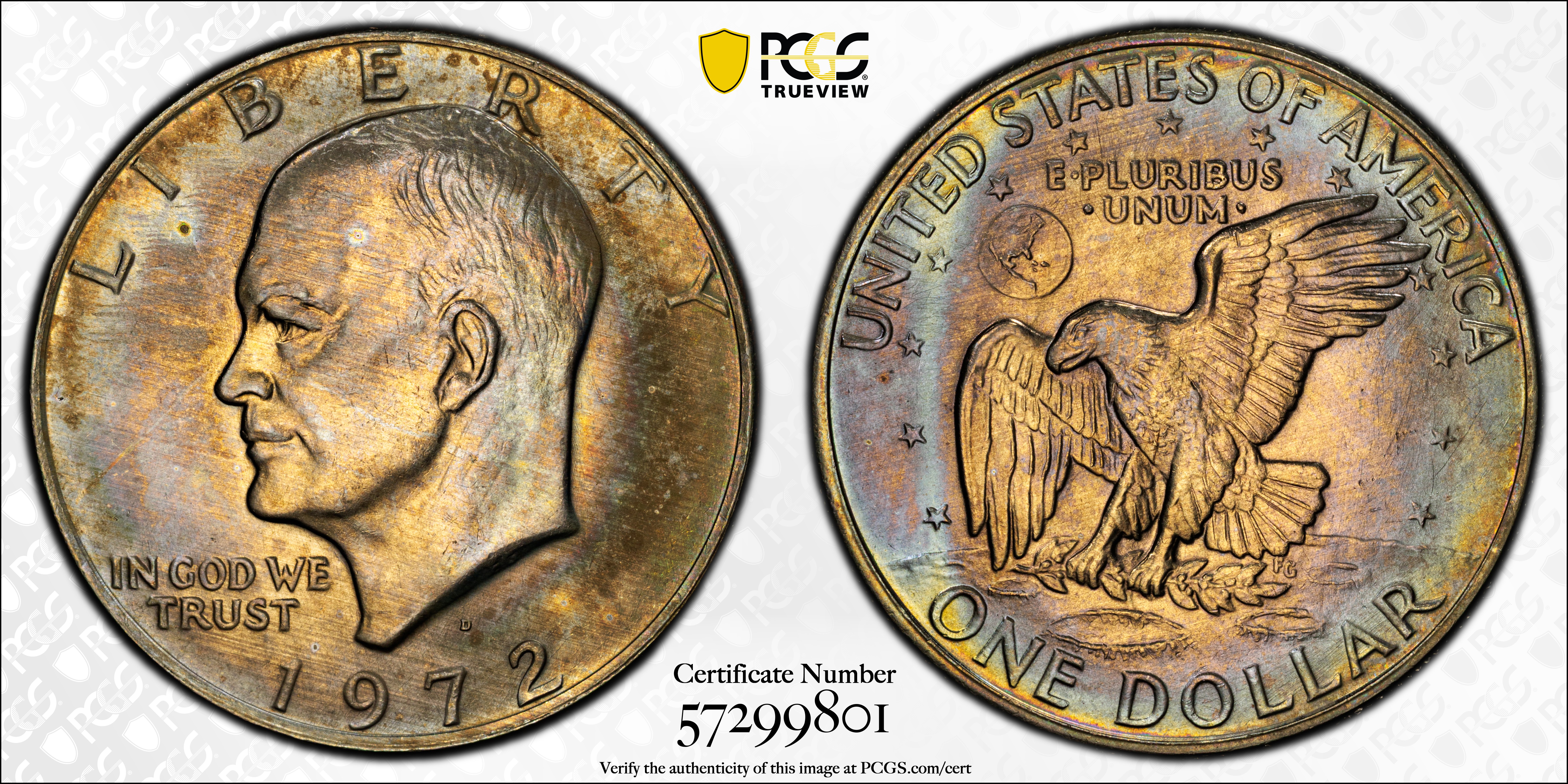 1972-D $1 MS66+ Certification #57299801, PCGS #7410