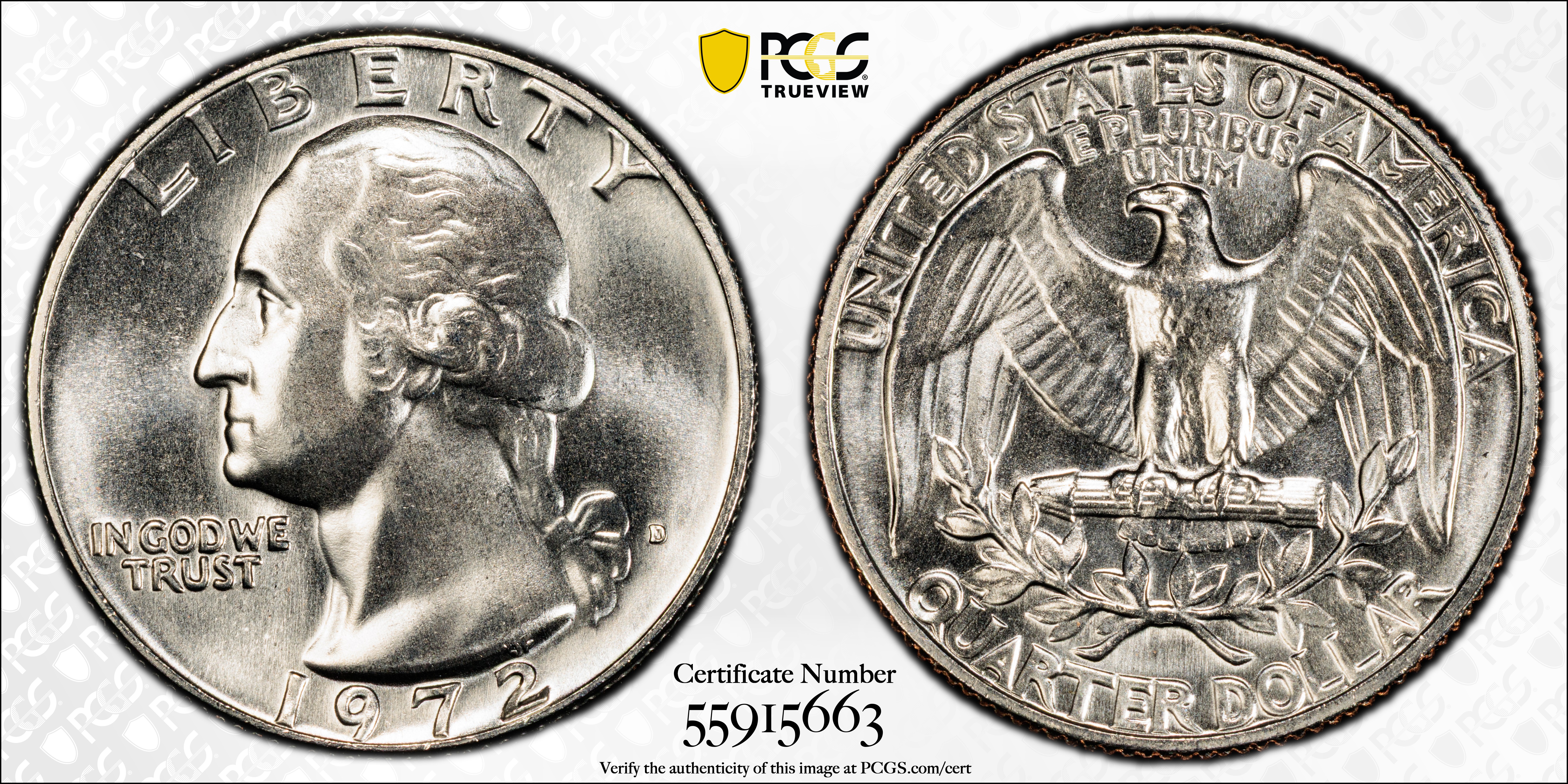 PCGS population data shows that 1972-D Quarters are submitted at a 2:1 rate over the 1972 (P) issue (#5889). This is largely attributed to the fact that the Denver Mint struck "flashier" coins throughout the 1970s. For comparison, the 1972-D Washington Quarter tops out at MS68, with more than 250 examples graded MS67. In contrast, the Philadelphia strike has an MS67 population that is approximately one-tenth the size, with no coins (as of December 2025) graded finer than MS67+.