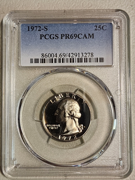 1972-S 25C, CAM PR69CAM Certification #42913278, PCGS #86004