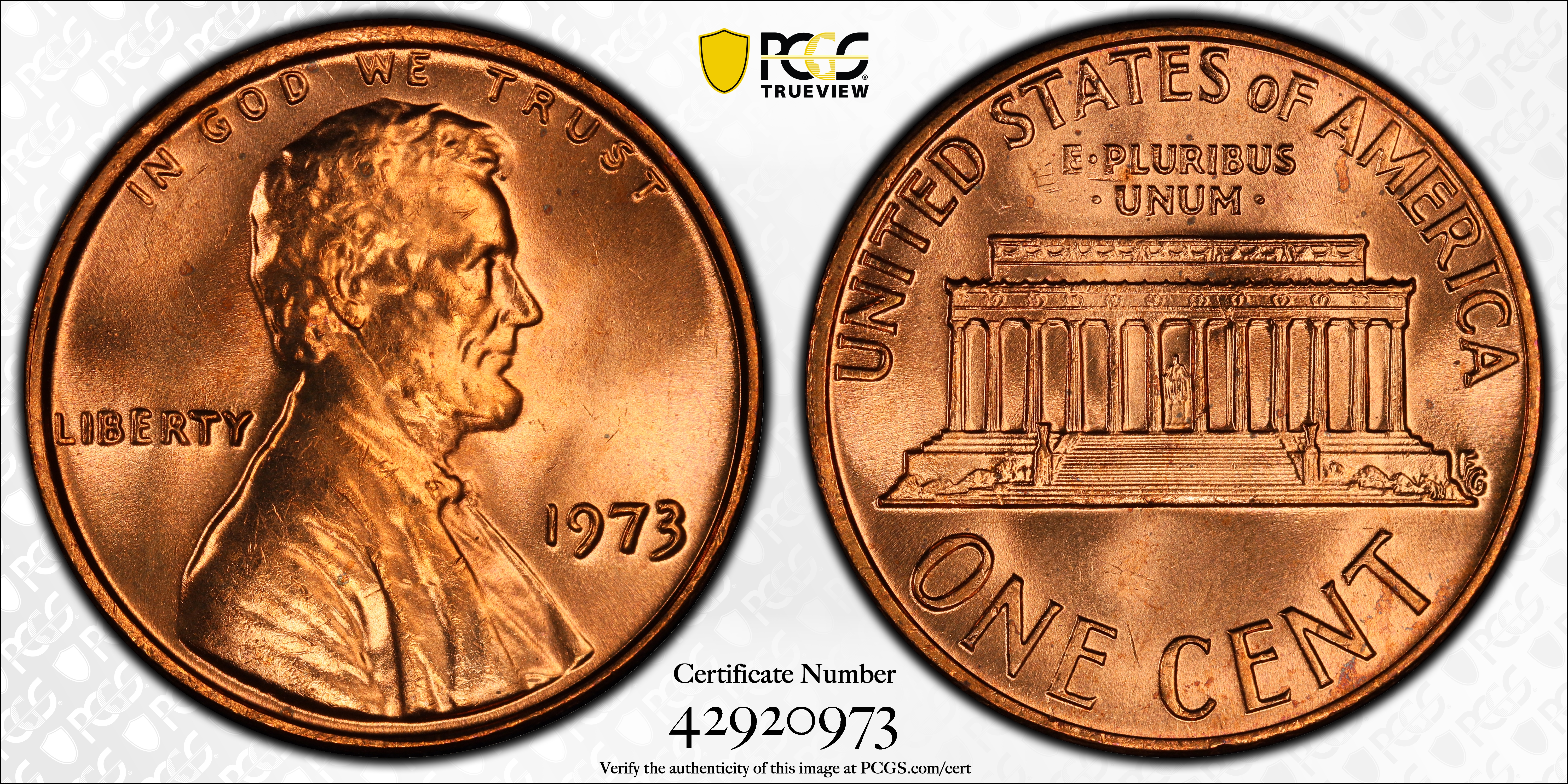 1973 1C, RD MS65RD Certification #42920973, PCGS #2965