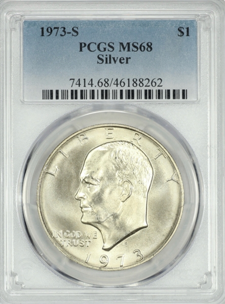 1973-S $1 Silver MS68 Certification #46188262, PCGS #7414