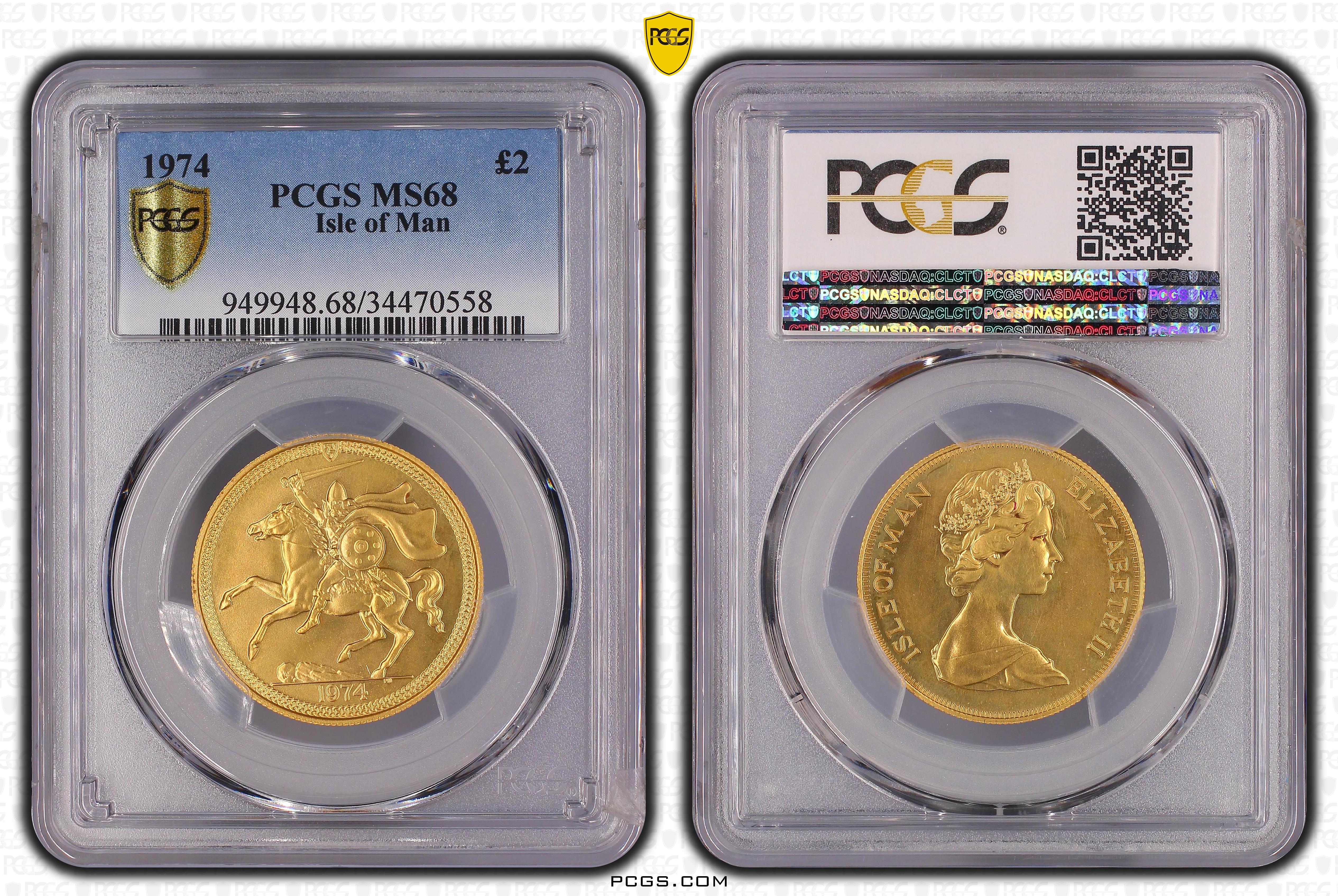 1974 £2 MS68 Certification #34470558, PCGS #949948