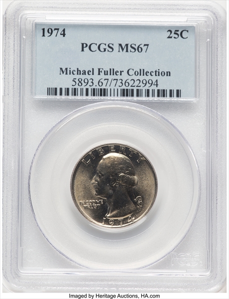 1974 25C MS67 Certification #73622994, PCGS #5893