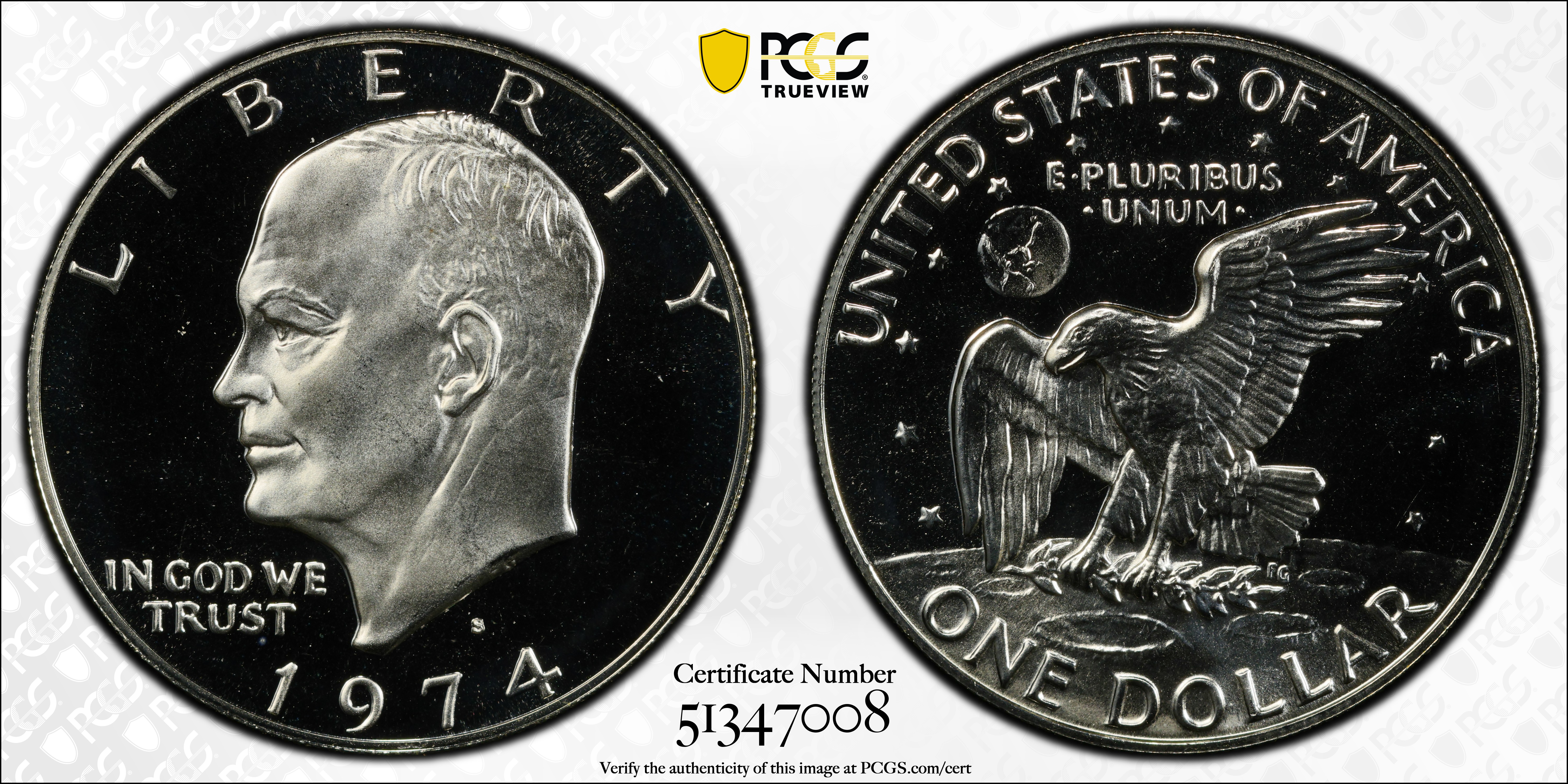 1974-S $1 Silver, CAM PR68CAM Certification #51347008, PCGS #87433