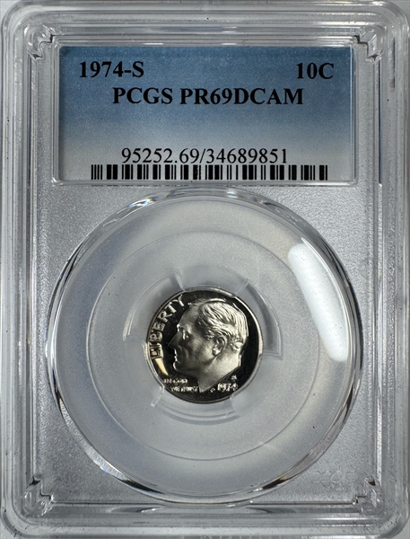 1974-S 10C, DCAM PR69DCAM Certification #34689851, PCGS #95252