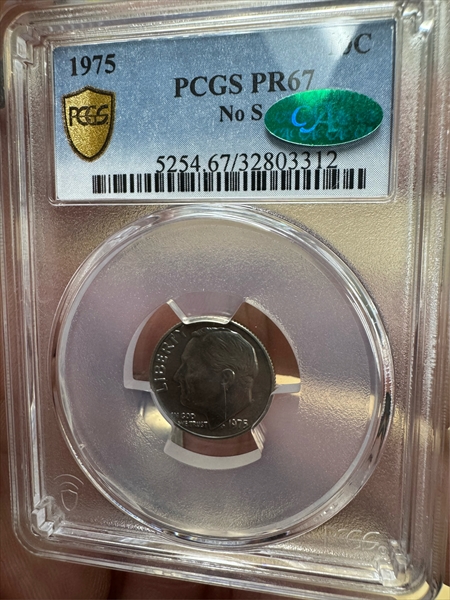 1975 10C No S PR67 Certification #32803312, PCGS #5254