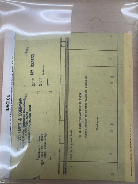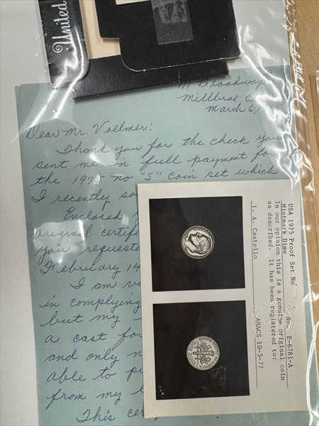 Only two examples of the 1975-S No S Dime are known. The first coin was discovered in a 1975-S Proof Set in 1977. The second example was found seven years later. The discovery coin was sold in 1979 to Proof coin specialist, Fred Vollmer, who sold it the next years later to a collector. Neither coin had ever appeared at auction until the discovery coin was included in the 2011 ANA sale offerings by Stack's-Bowers.