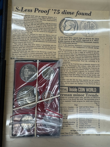 There are only two 1975 No S Proof Dimes known. The coins were first discovered in July 1977 when the first example was sent to Coin World in the original 1975 Proof Set that it was purchased in.The following year, Anacs certified this coin. A few months later Anacs certiffied the second known example.