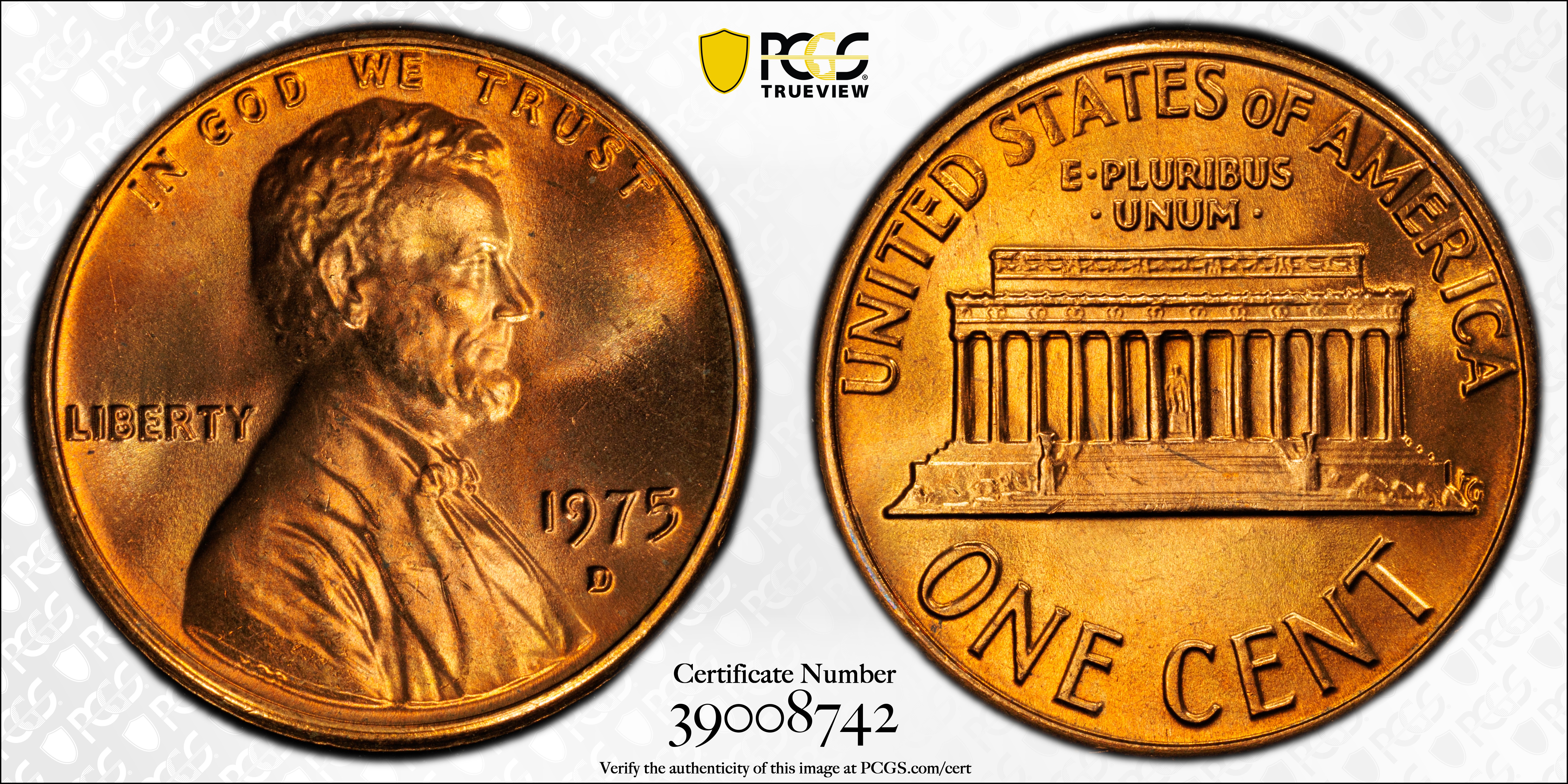 1975-D 1C, RD MS67RD Certification #39008742, PCGS #2979