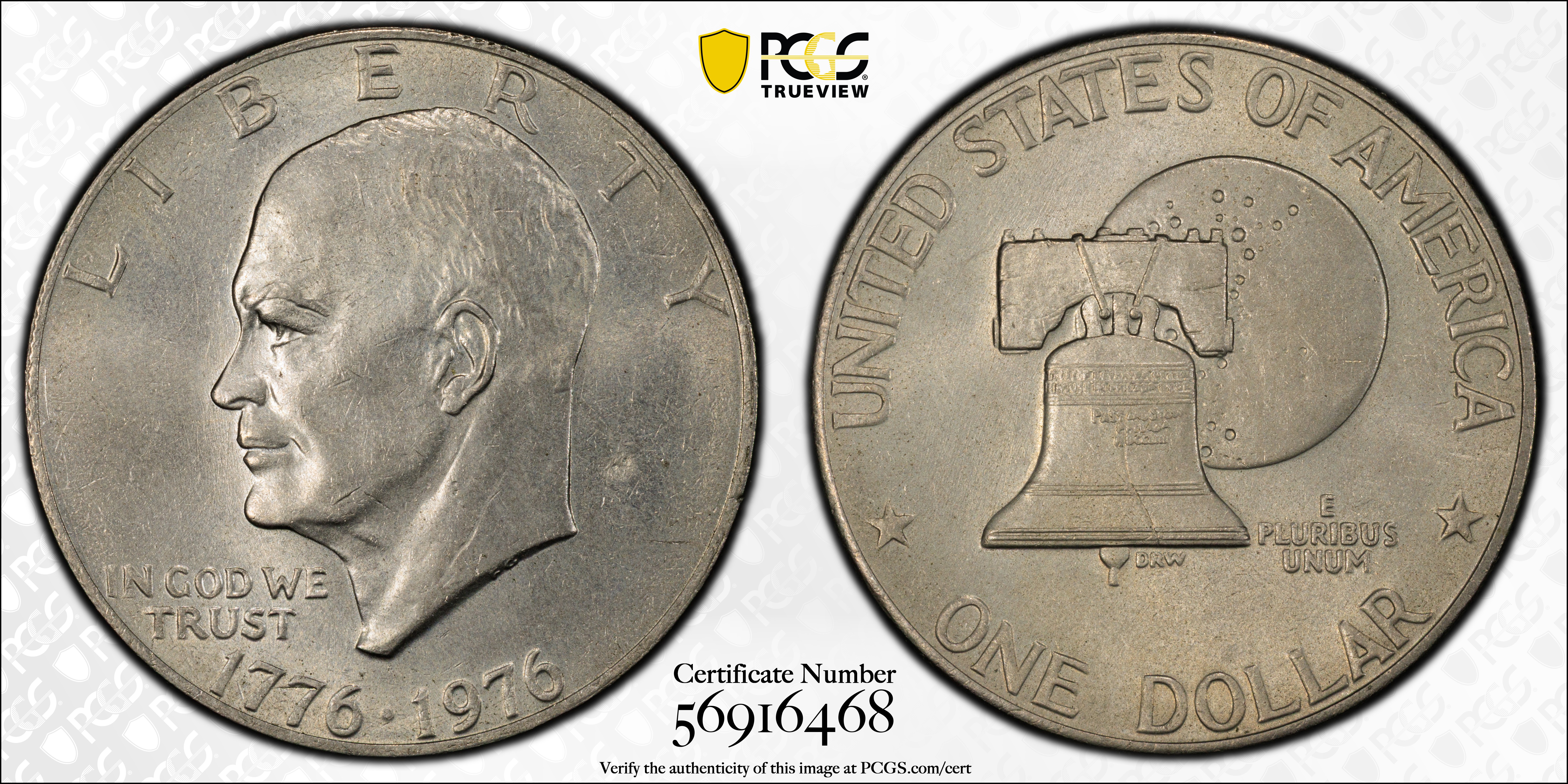 In 1976 the U.S. Mint struck four different types of Bicentennial Eisenhower Dollars. From the four different coins, the 1976 Type 2 is common in MS65 condition and lower. It is scarce in MS66 condition and very difficult to find in MS67 or higher.