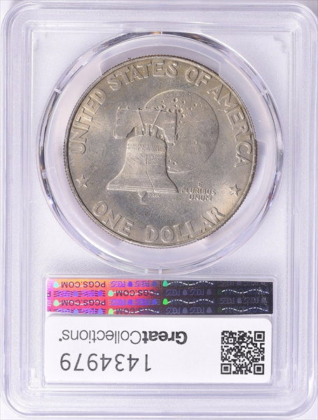 The 1976 Eisenhower Dollar had a one year reverse design displaying the Liberty Bell as well as an image of the moon in the background. 1976 Eisenhower Dollars were actually struck in 1975 but had the date of 1976 on the actual coins.