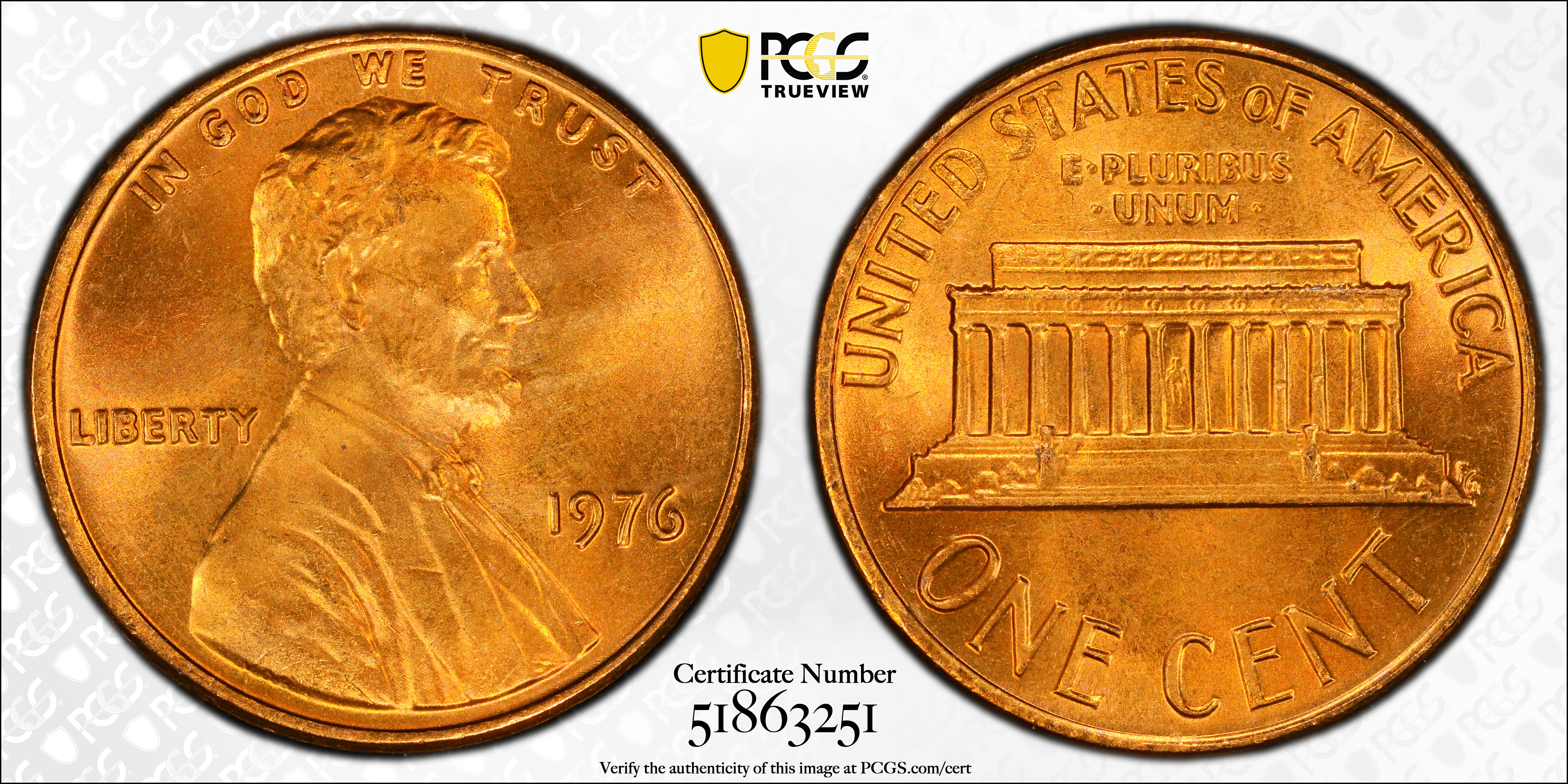 1976 1C, RD MS67RD Certification #51863251, PCGS #2982