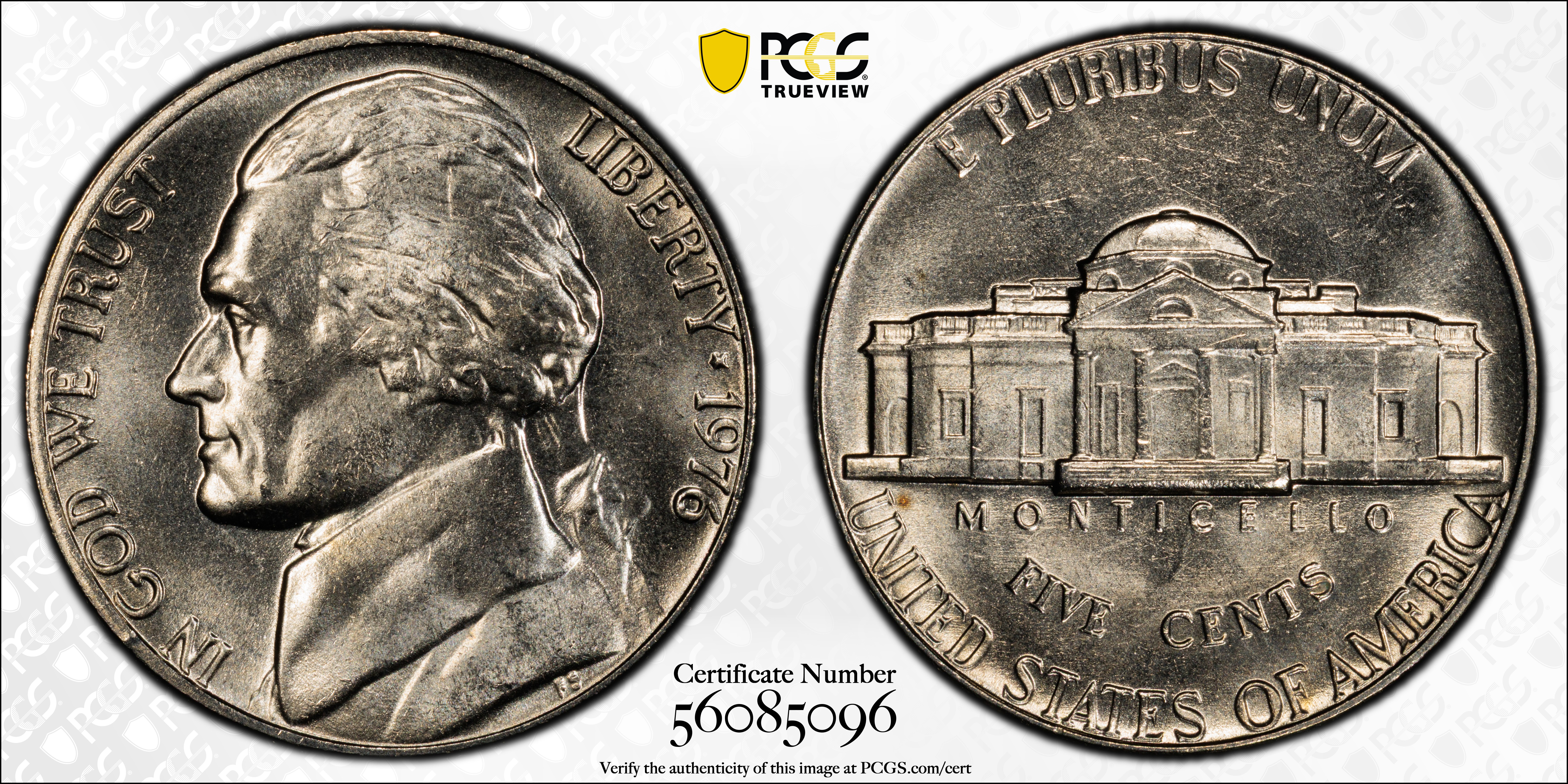 The 1976 Jefferson Nickel is very common since over 300 million were struck. Examples in circulated grades and up to about MS64 condition are common and can be acquired with minimal effort. Because of the weakness in the steps in the reverse, it is difficult to acquire in MS65 with Full Steps and less than 100 examples are known. In MS66 Full Steps it is difficult to find with less than a few dozen examples known. In MS67 Full Steps, it is extremely scarce with less than a handful of examples known and none being in finer condition.