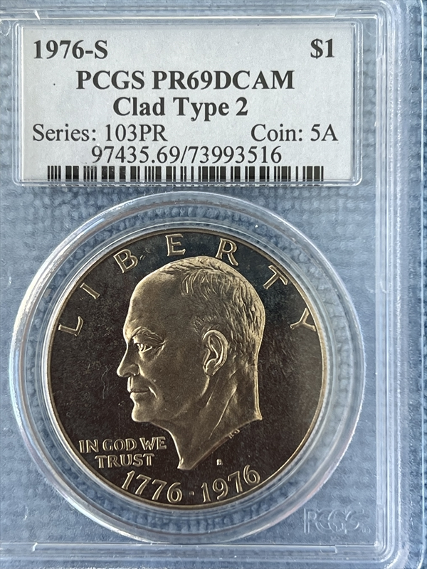 1976-S $1 Clad Type 2, DCAM PR69DCAM Certification #73993516, PCGS #97435