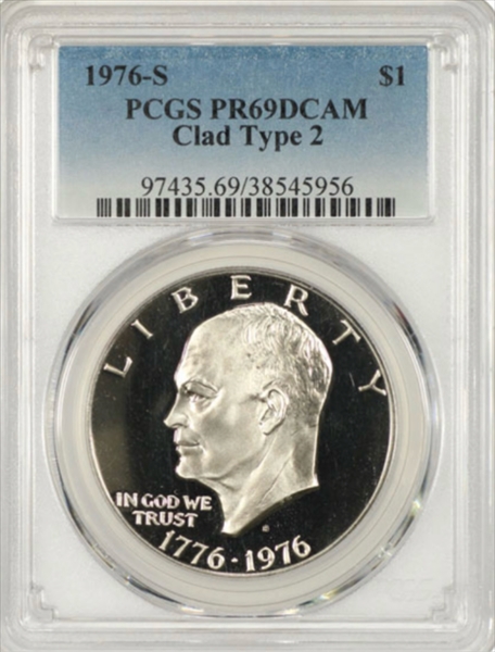 1976-S $1 Clad Type 2, DCAM PR69DCAM Certification #38545956, PCGS #97435
